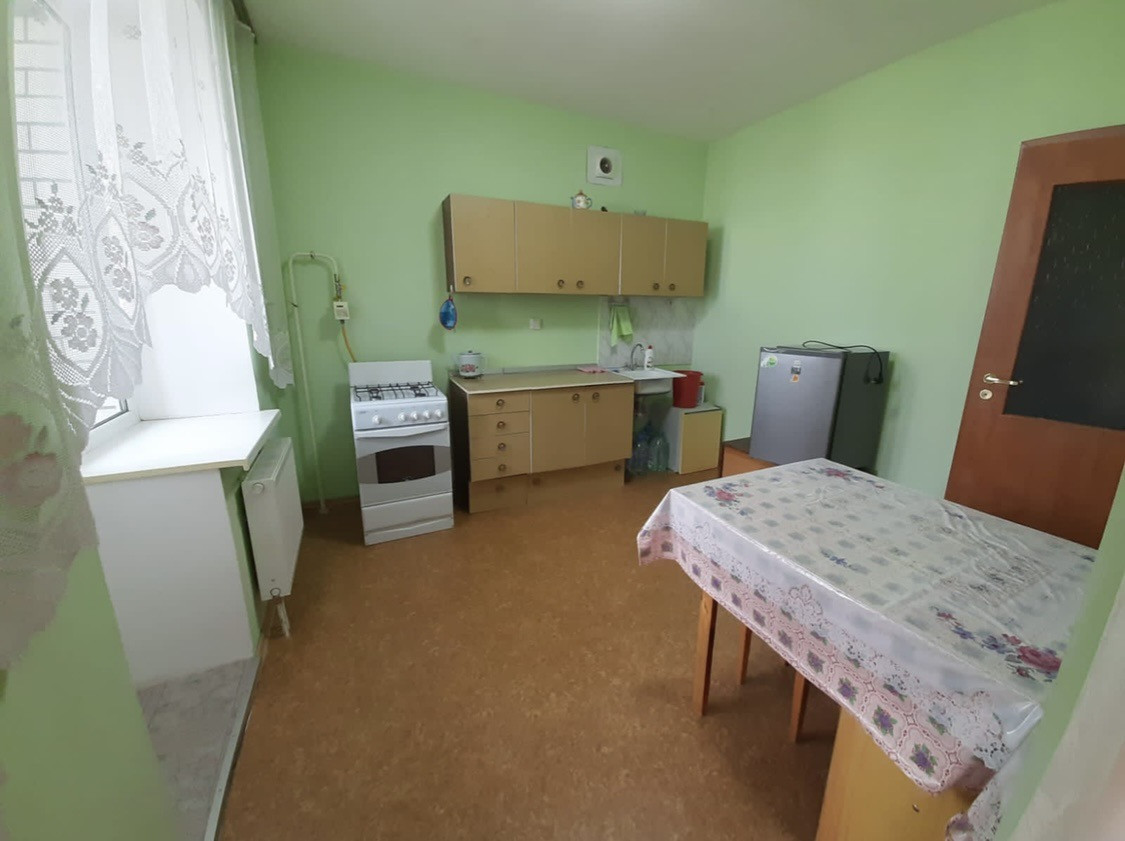 Продаётся однокомнатная квартира на 9 этаже в современном монолитно-кирпичном доме. Высокие потолки, просторный санузел. Пластиковые окна, застекленная лоджия, установлена сплит-система, окна выходят во двор. Подъезд чистый, ухоженный.  В пешей доступности школа, детский сад, супермаркеты, рыночек, большой детский парк, остановки общественного транспорта. Рядом улица Тулака и Туркменская.