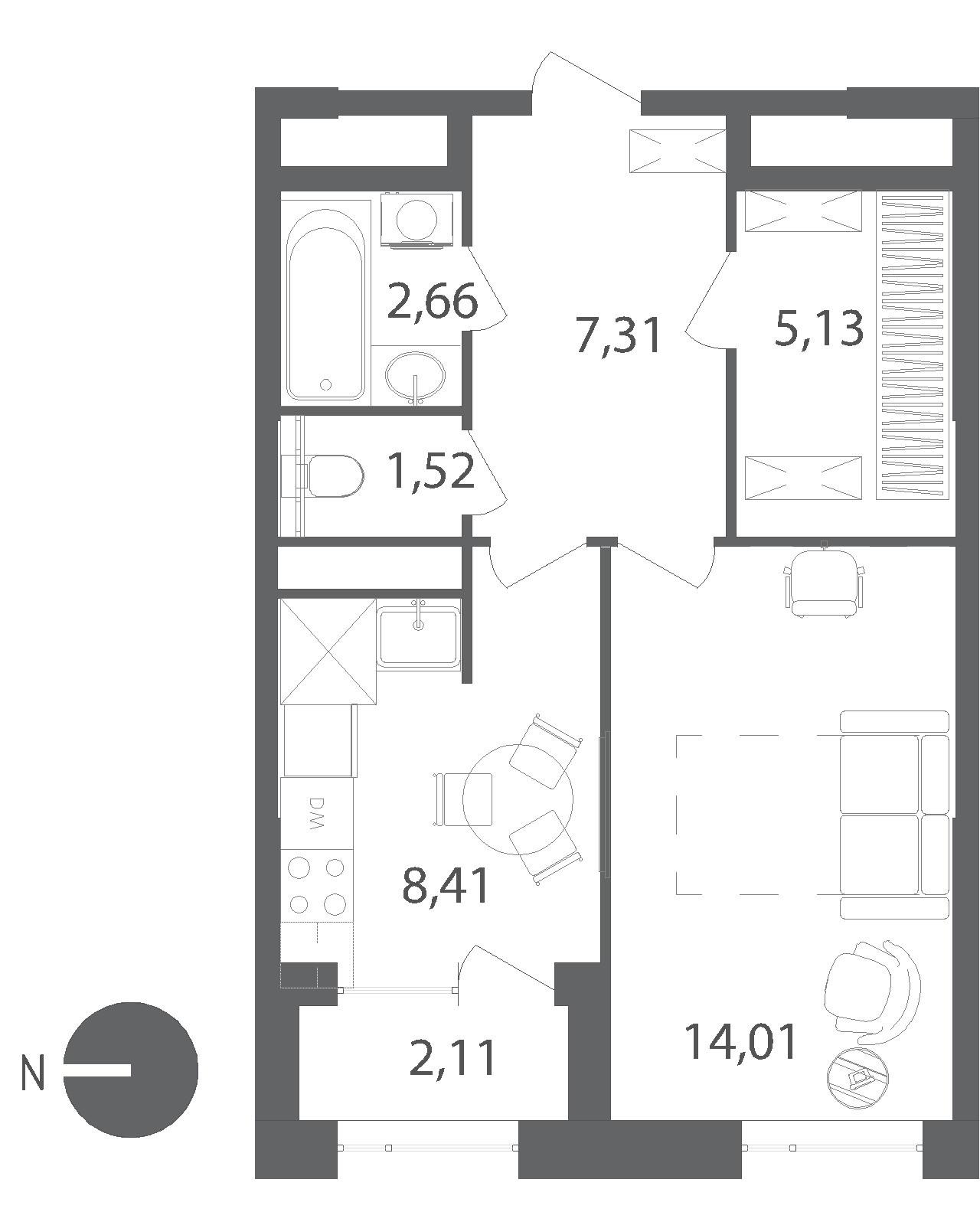 Жилая площадь 14.01 м2