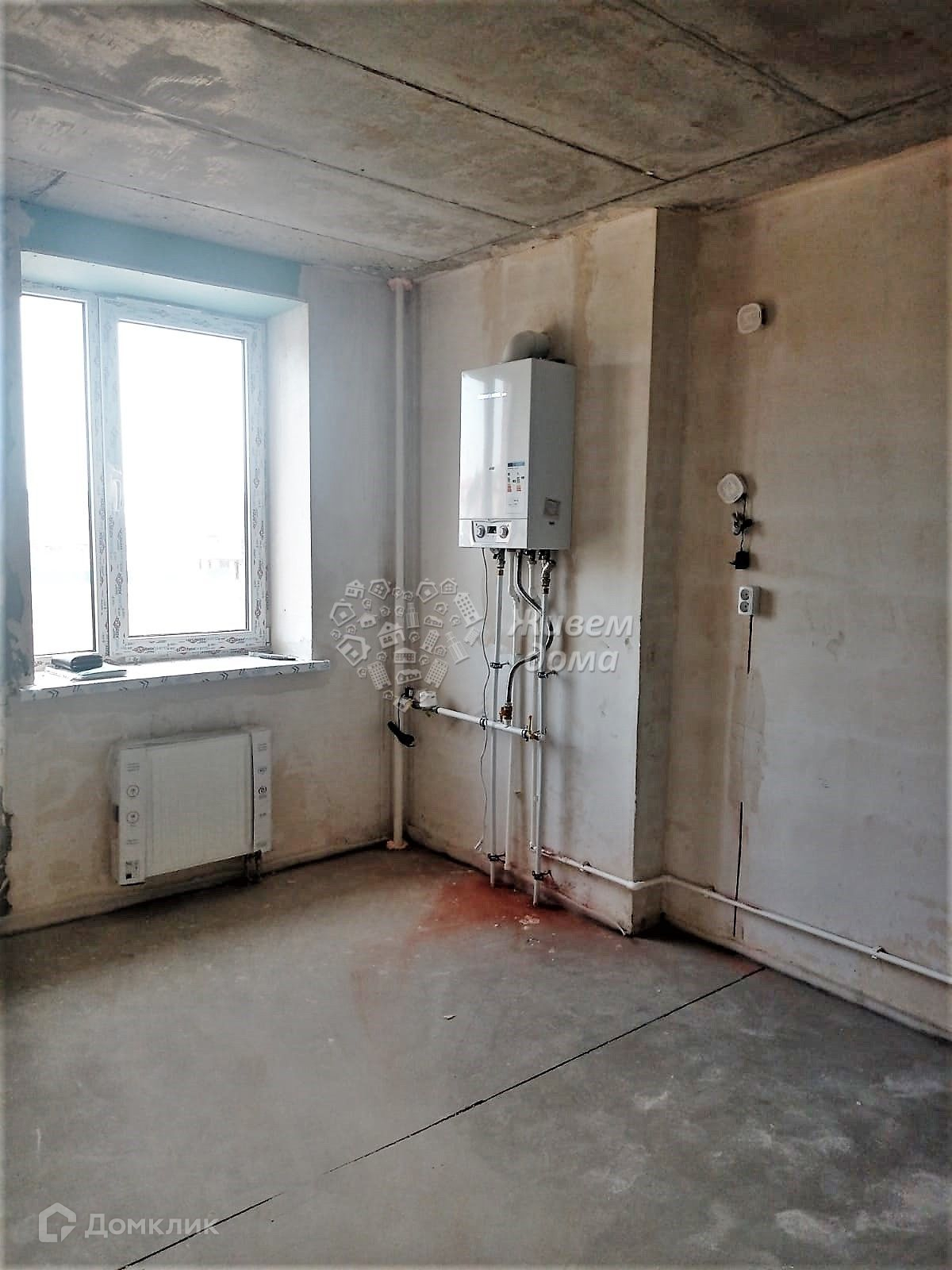 Пластиковые окна. Сделана проводка и отштукатурены стены, выводы под воду. Есть лоджия