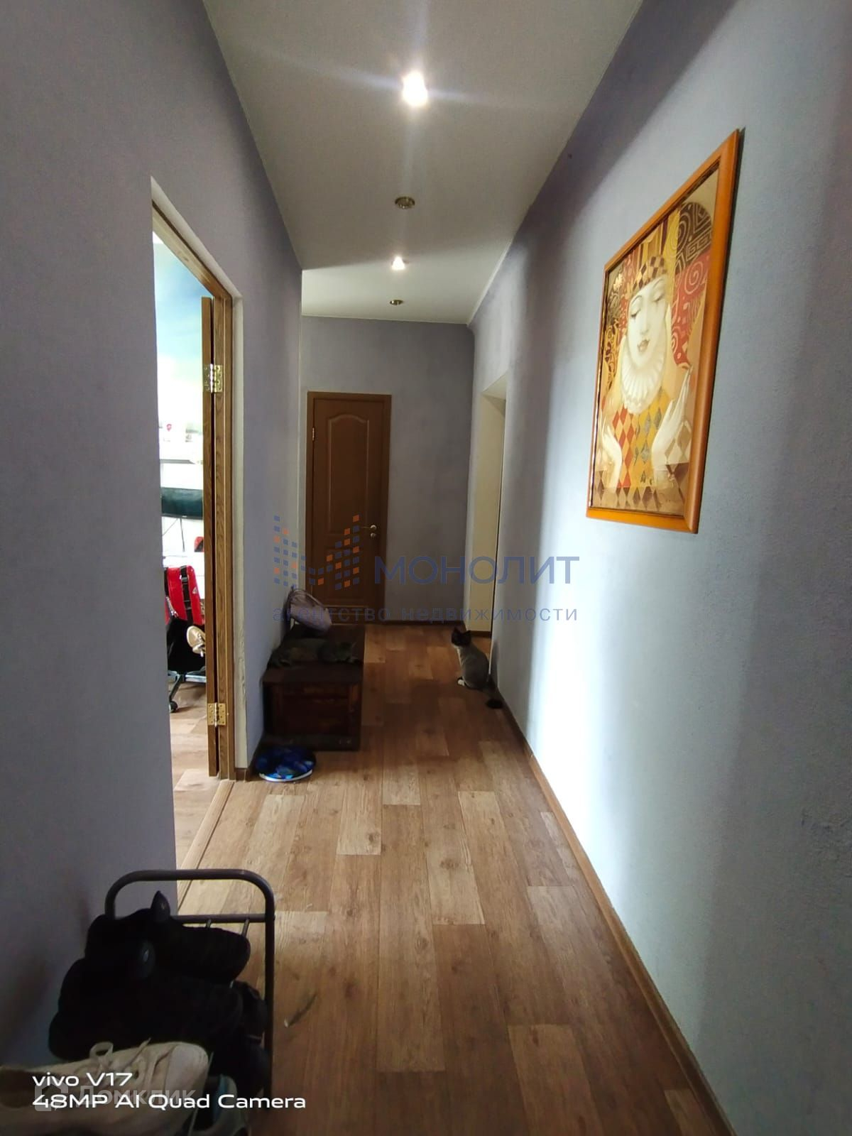 В квартире пластиковые окна,на полу линолеум, натяжные потолки.
