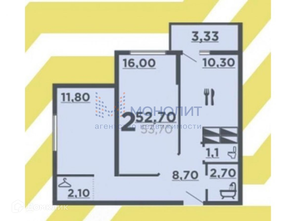 2-комнатная квартира, 53.8 м2, этаж 6 / 16, на продажу в Волгограде, проспект Маршала Жукова, 98Б
