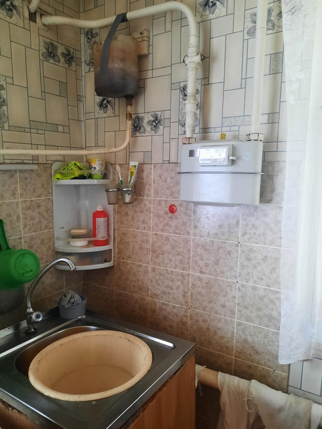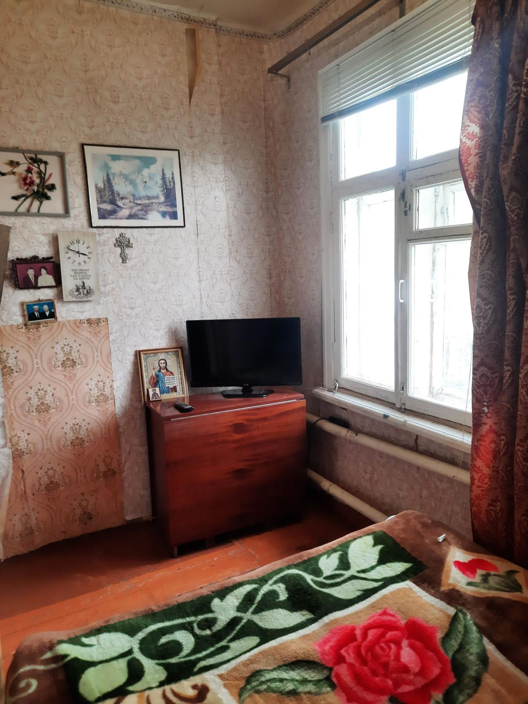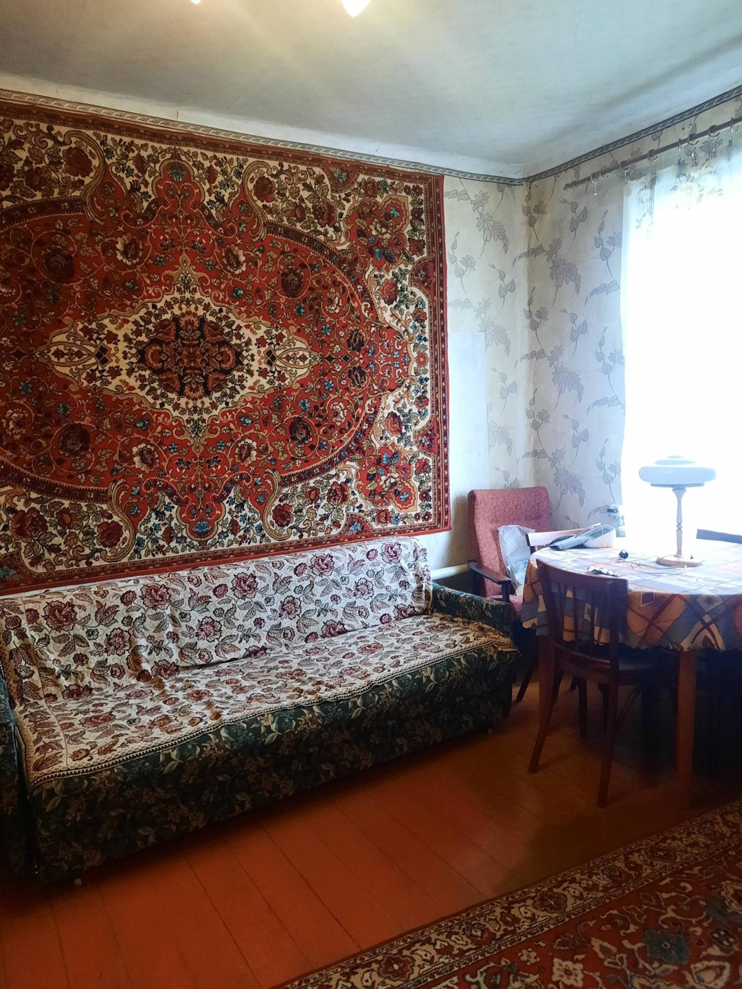 квартира в доме на 4 хозяина, комнаты смежные, есть приусадебный участок, санузел на улице , отопление газовое, вода в доме.