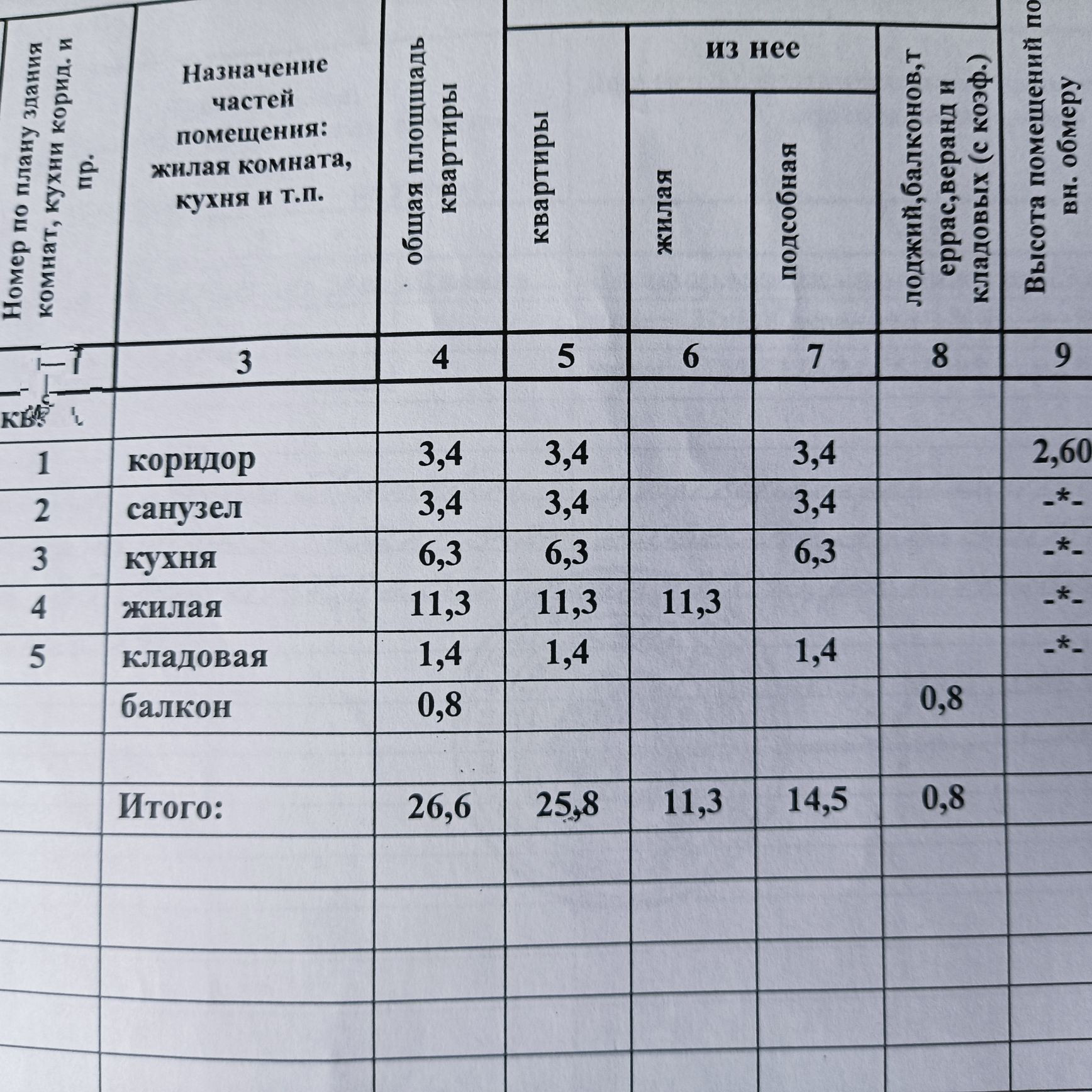 Высота потолков 2.6 м