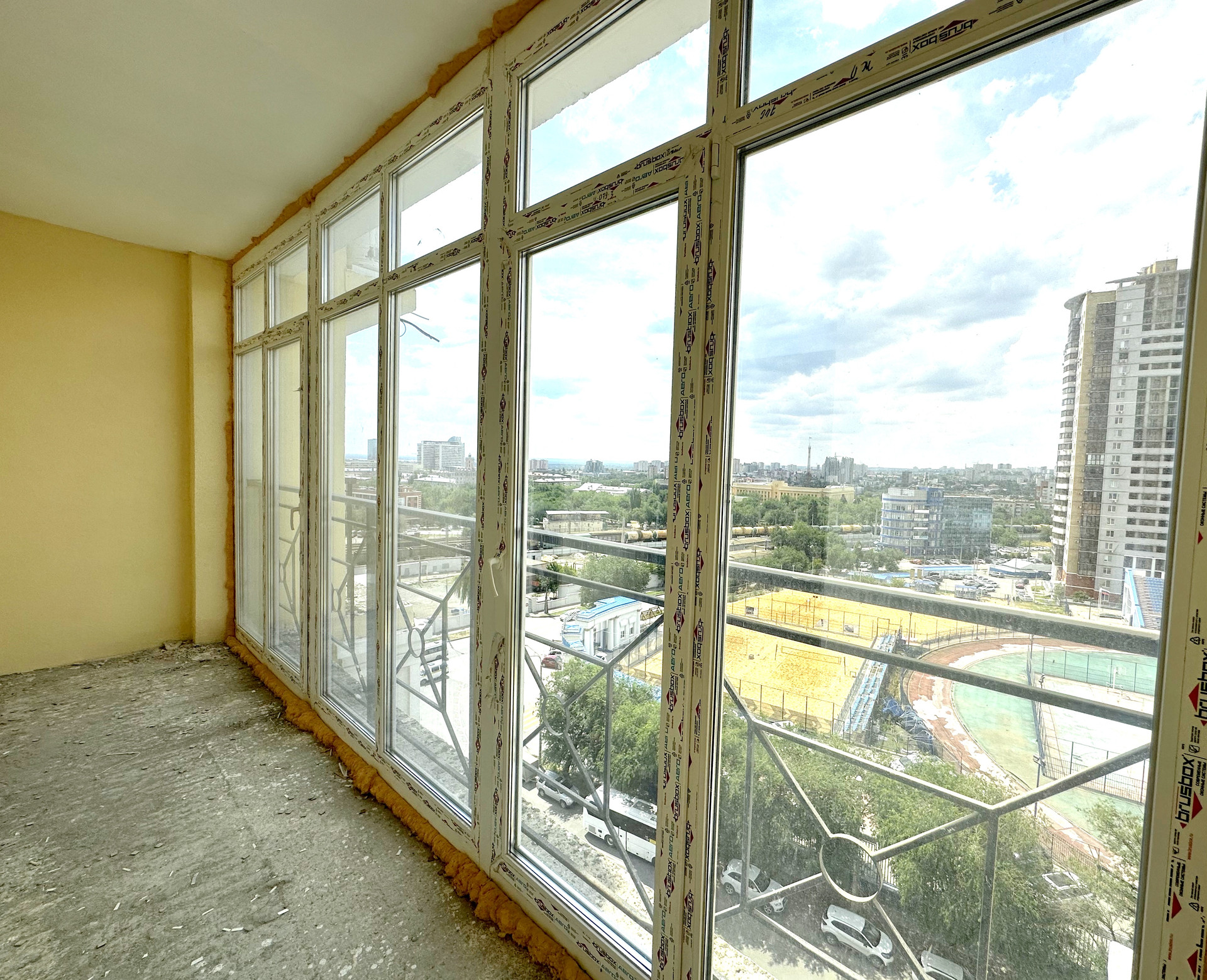 Установлен тройной стеклопакет, с напылением серебра и тонировкой от солнца.