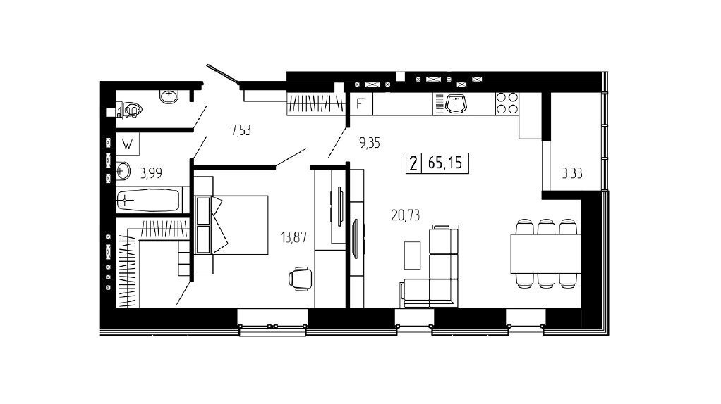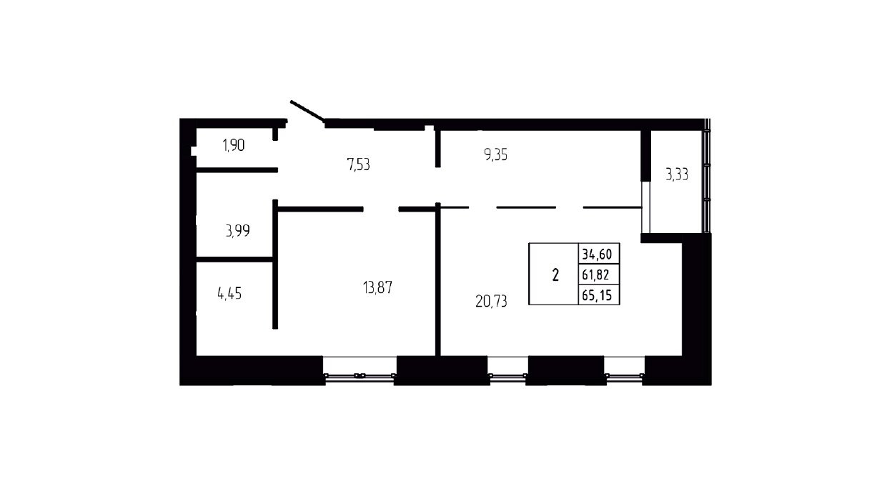 Общая площадь 65.15 м2
