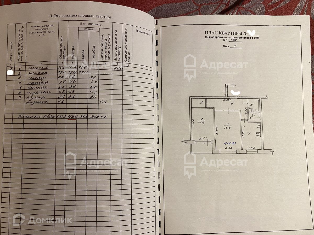 2-комнатная квартира, 49 м2, этаж 9 / 9, на продажу в Волгограде, Елецкая улица, 10