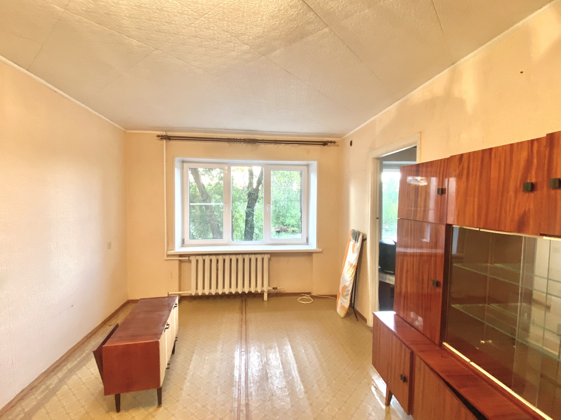 Квартира общей площадью 45,5 кв. м. на 2- м этаже, 5-ти этажного многоквартирного дома. В квартире установлено 1 пластиковое окна, входная дверь металлическая. С/у совмещённый. Установлены счетчики на газ, воду, свет.