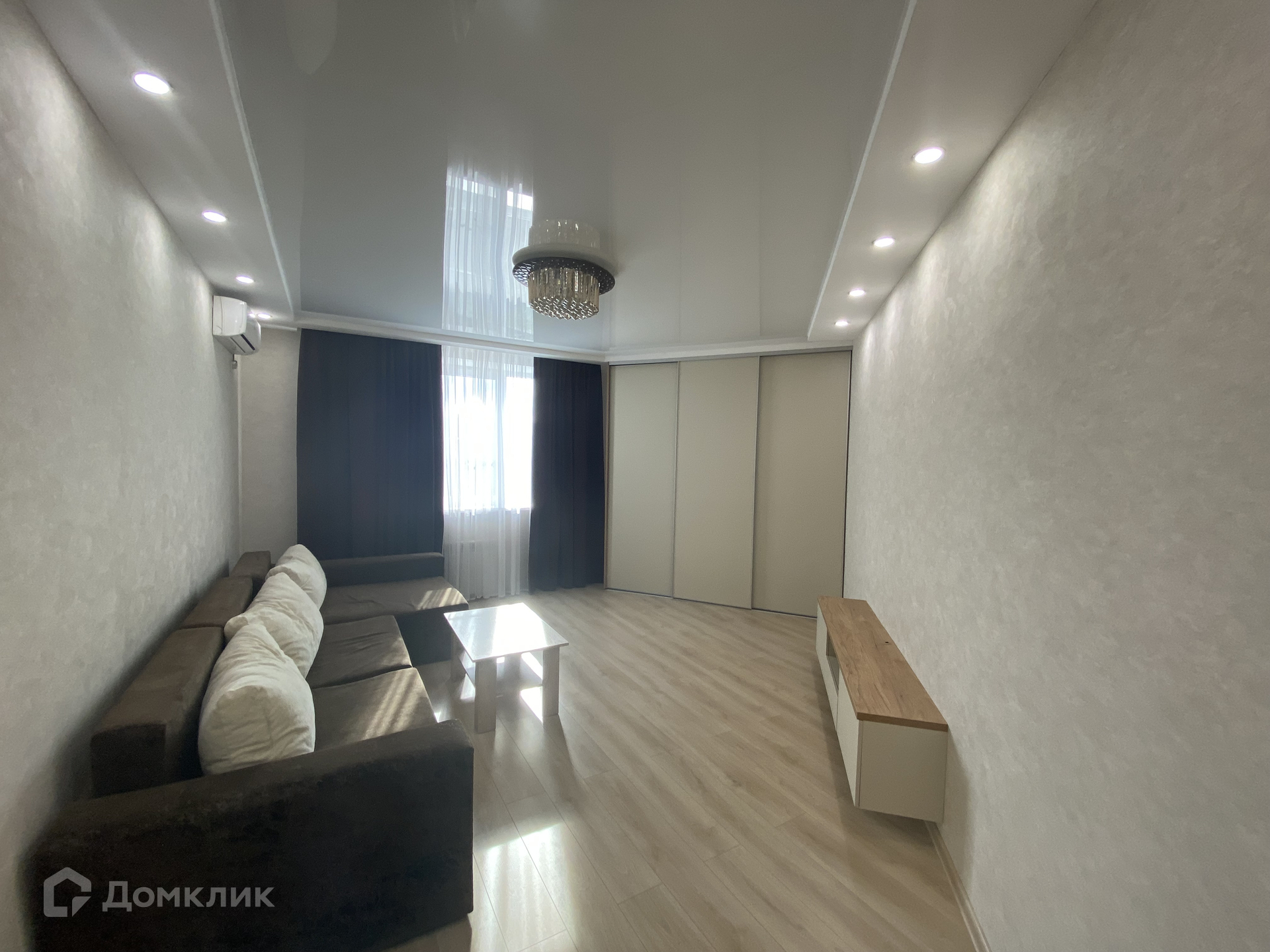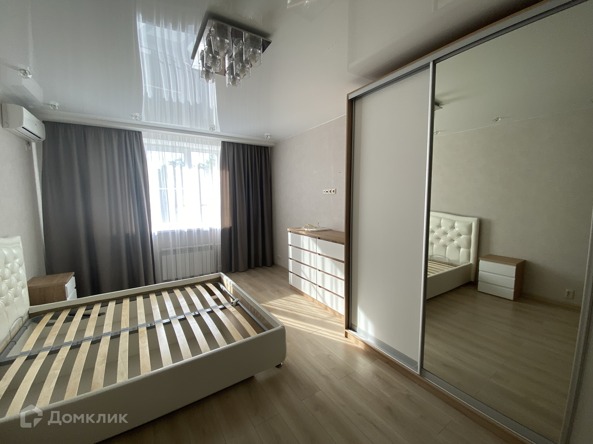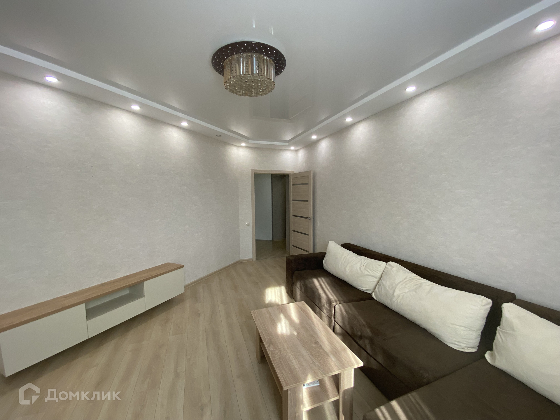 В квартире выполнен свежий современный ремонт. Весь набор мебели и бытовой техники остается в квартире. Натяжные потолки. Пластиковые окна, на полу ламинат. Установлены современные межкомнатные двери. Раздельный санузел. Есть застекленная пластиком лоджия.