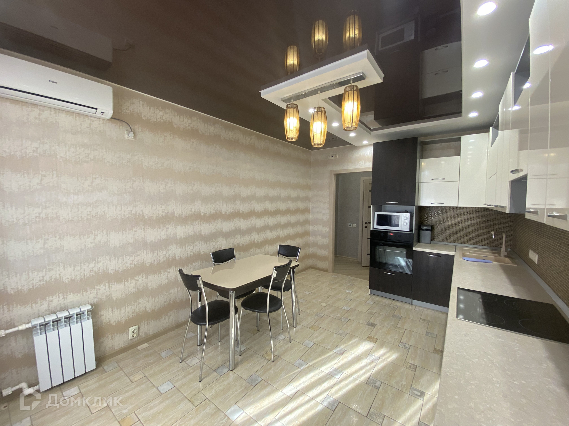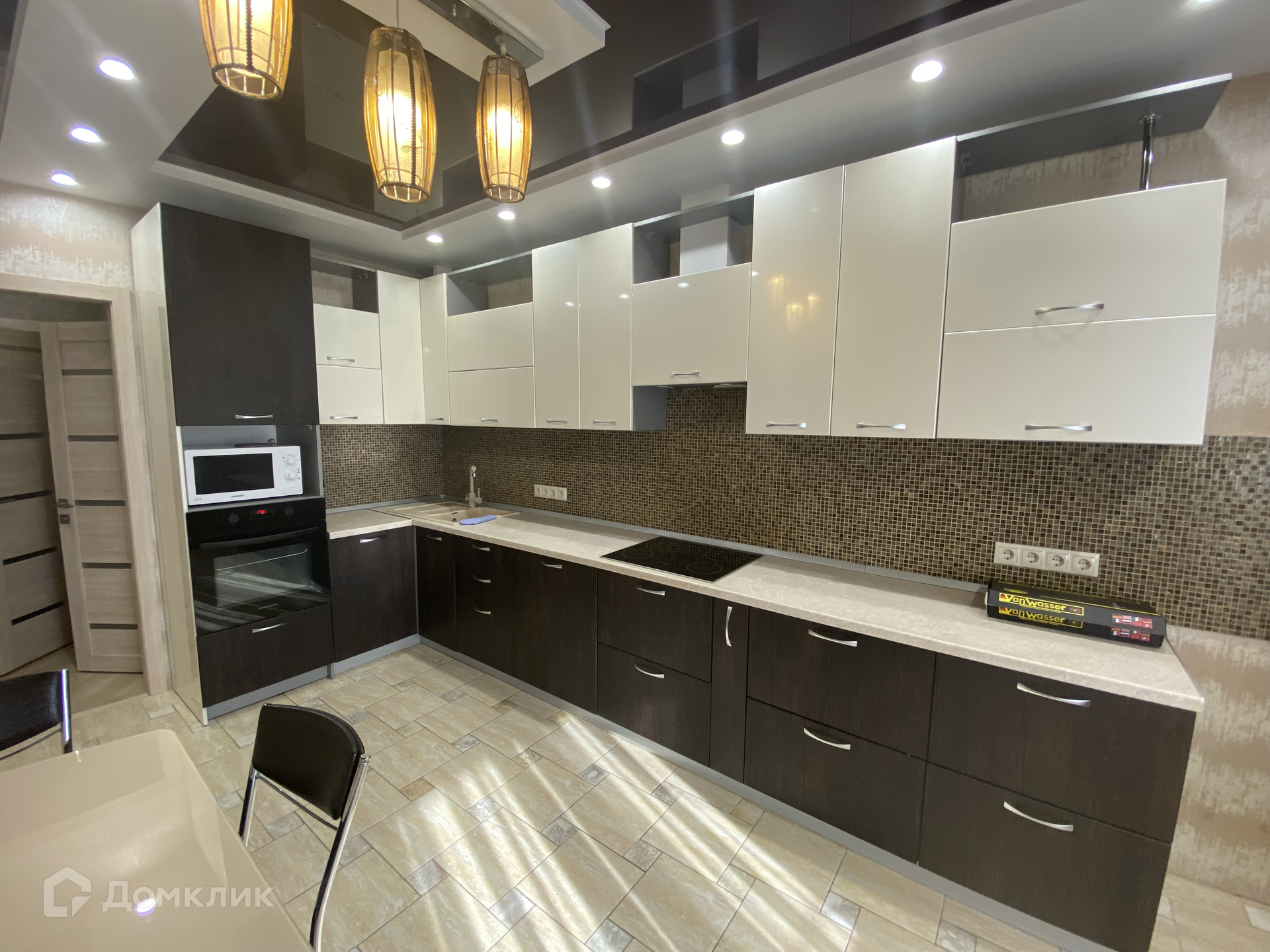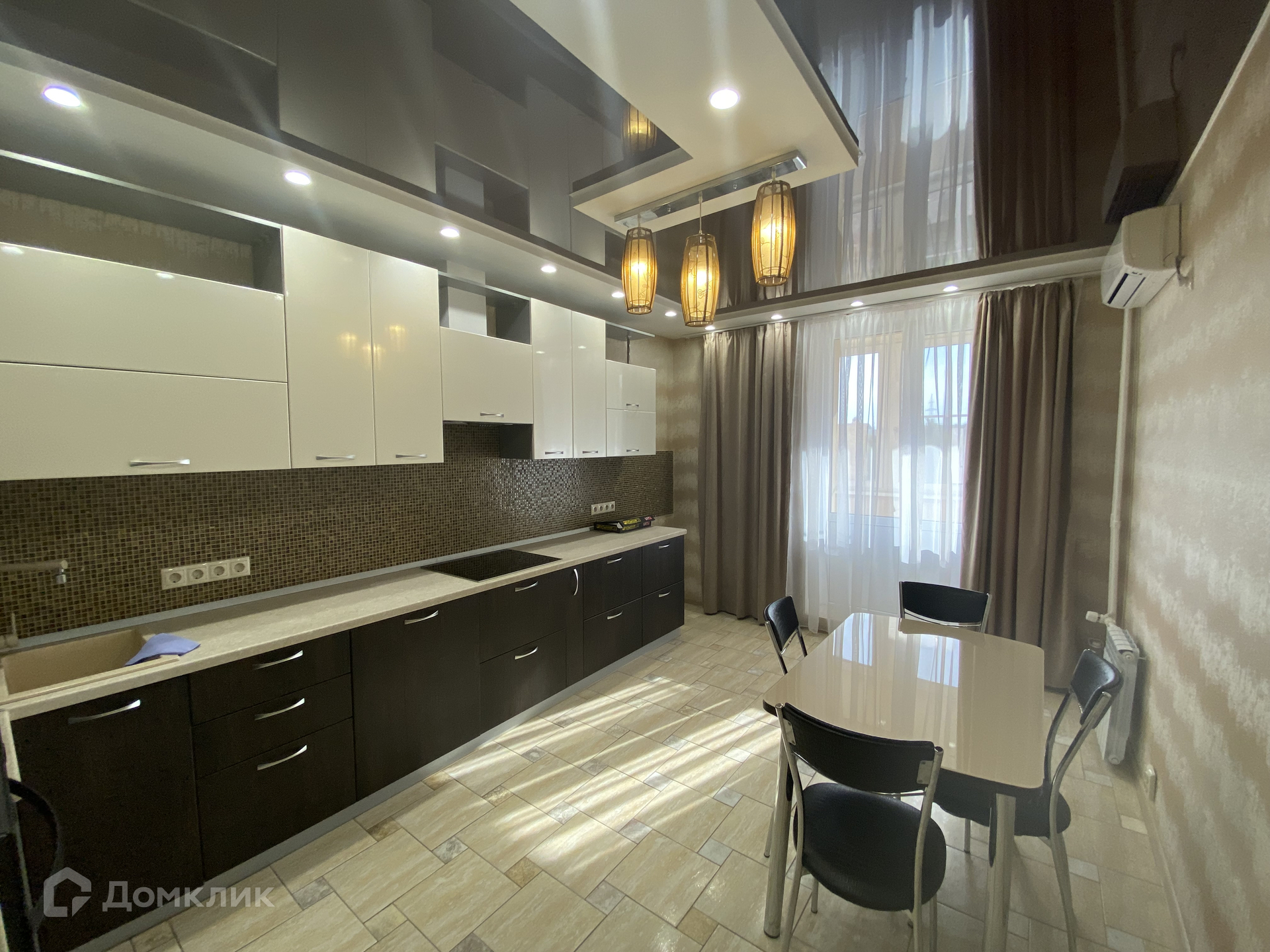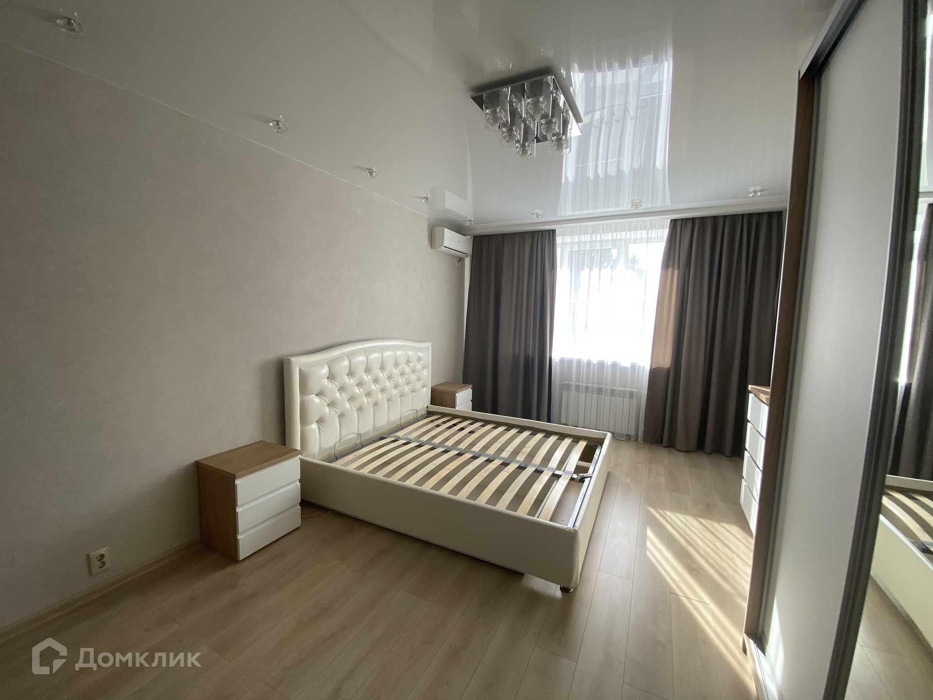 В квартире выполнен свежий современный ремонт. Весь набор мебели и бытовой техники остается в квартире. Натяжные потолки. Пластиковые окна, на полу ламинат. Установлены современные межкомнатные двери. Раздельный санузел. Есть застекленная пластиком лоджия.