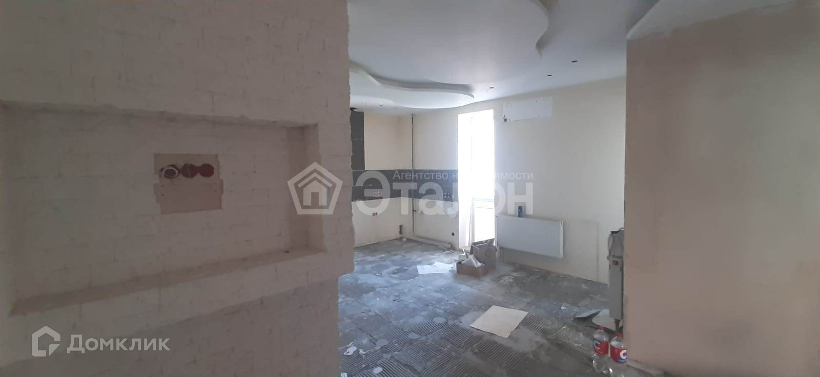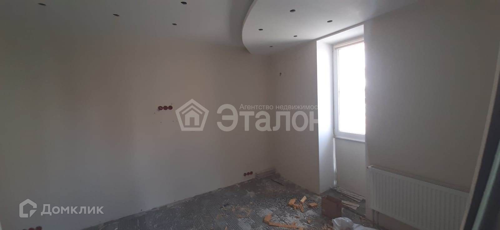 На данный момент в квартире сделана проводка, выведено точечное освещение на потолке. Потолок многоуровневый. Квартира подготовлена под чистовую отделку.