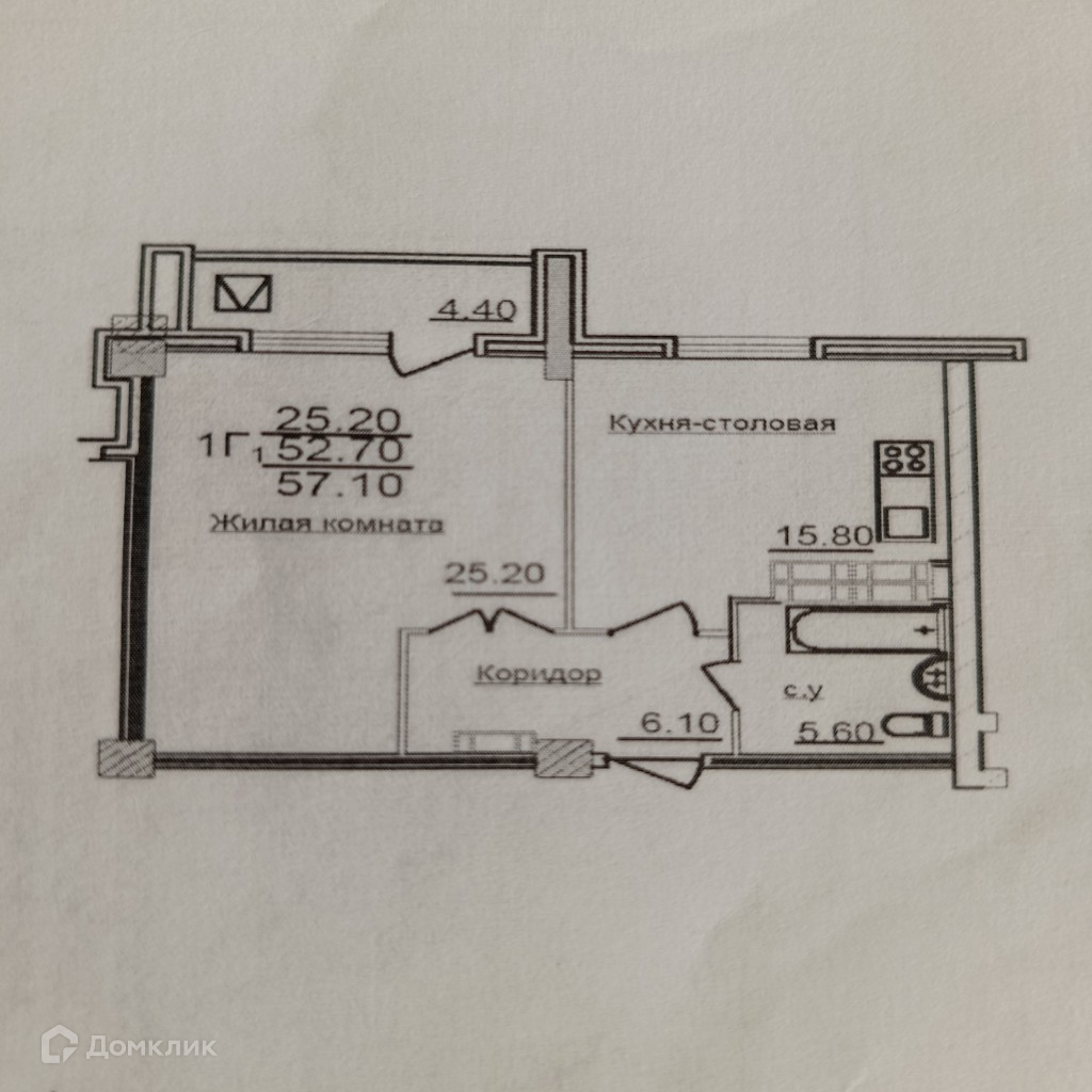 Общая площадь 52.2 м2