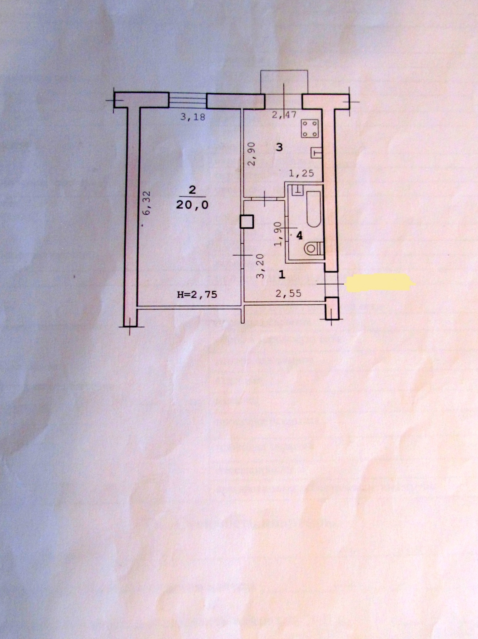 Высота потолков 2.75 м