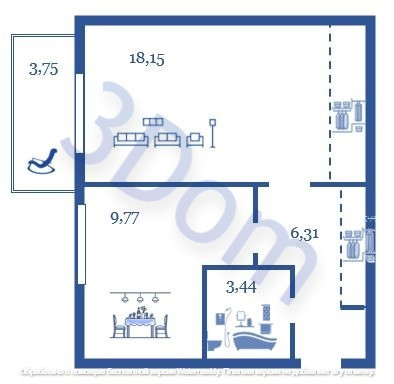 Жилая площадь 18.15 м2