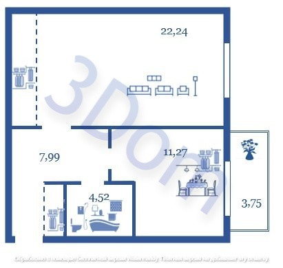Жилая площадь 22.24 м2