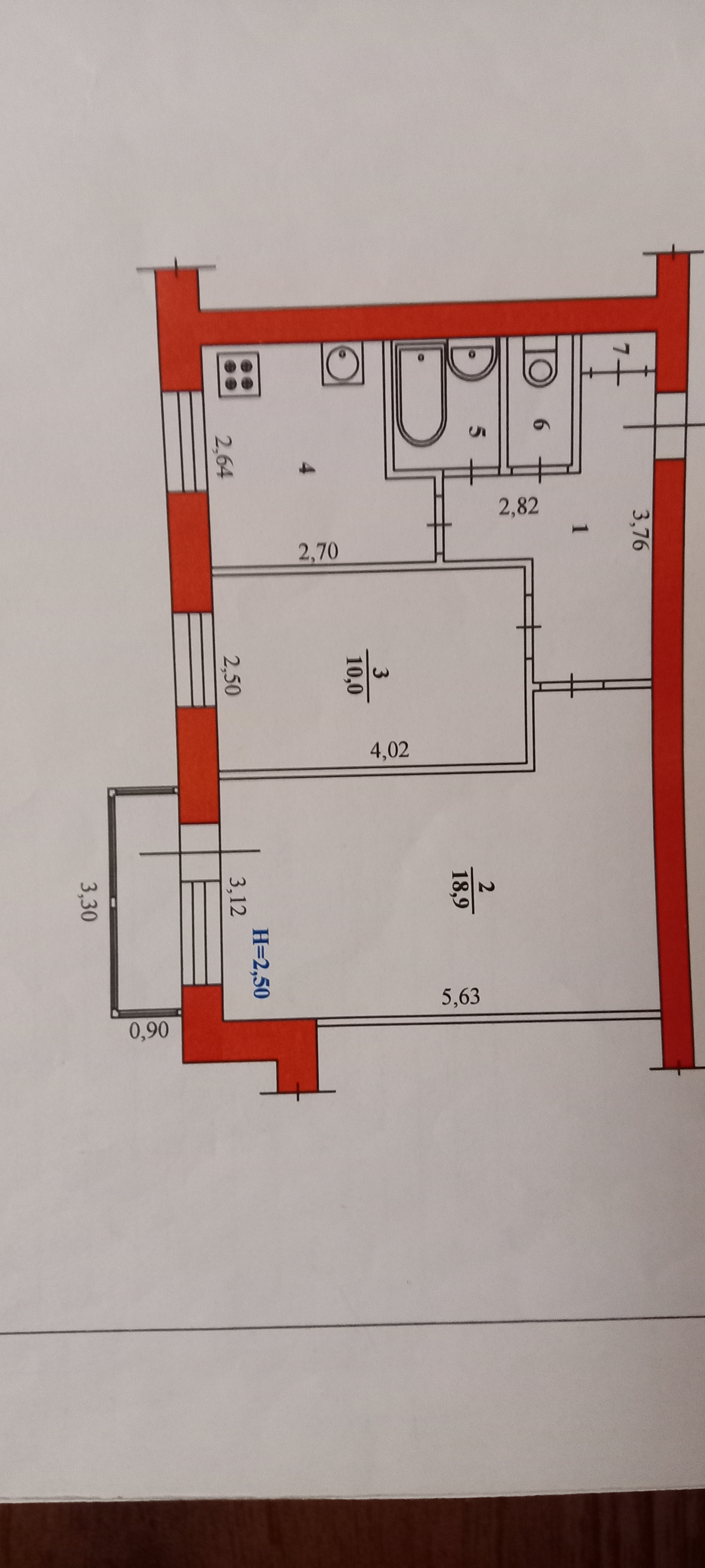 Высота потолков 2.5 м
