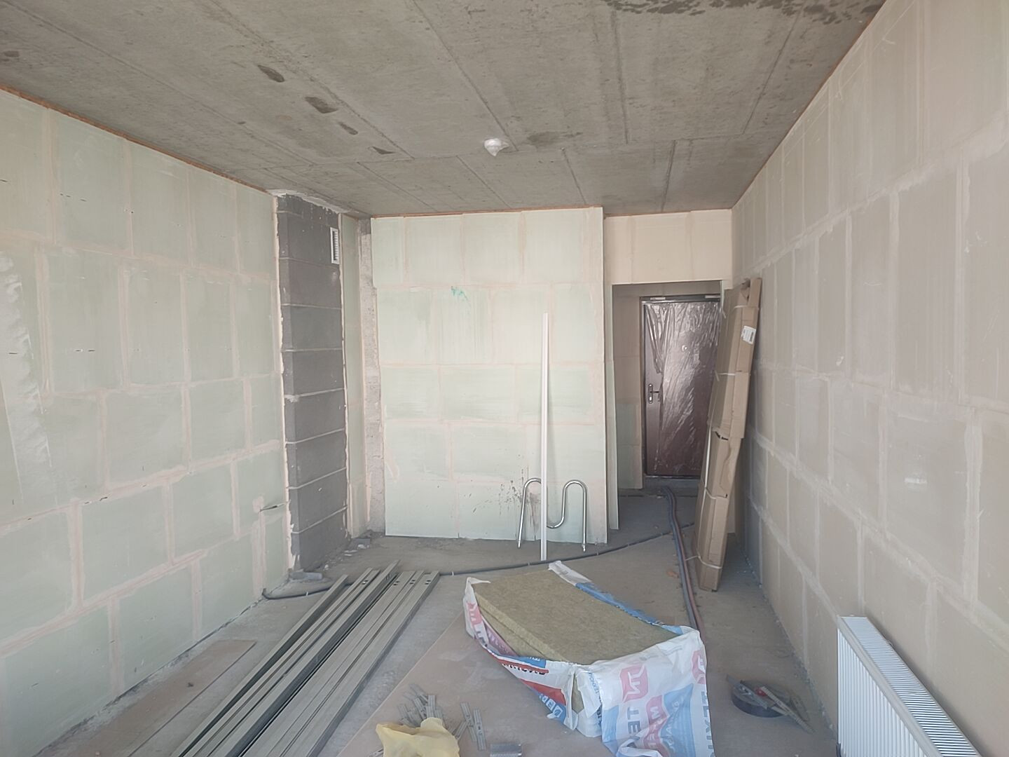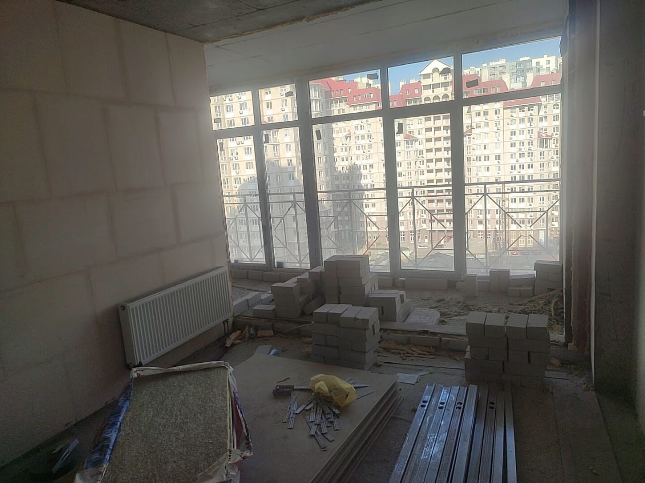 Без отделки, площадь квартиры 41 м2 без учета большой лоджии ( + 10 м2), можно увеличь площадь по желанию.