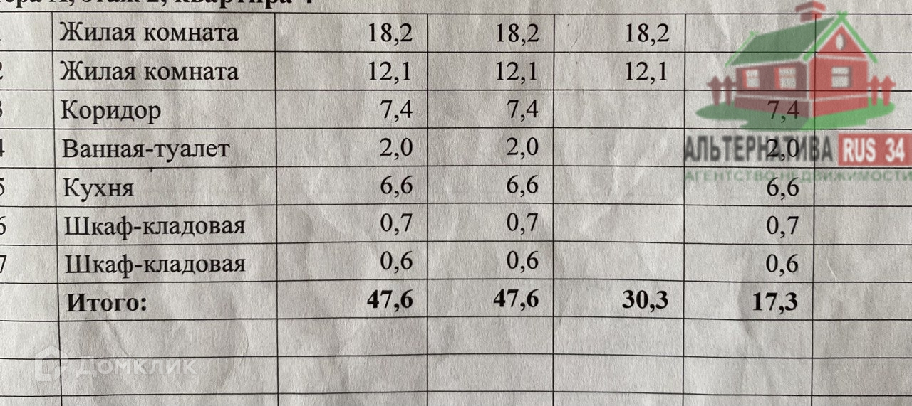 общая 47.6 / жилая 30.3 / кухня 6.6