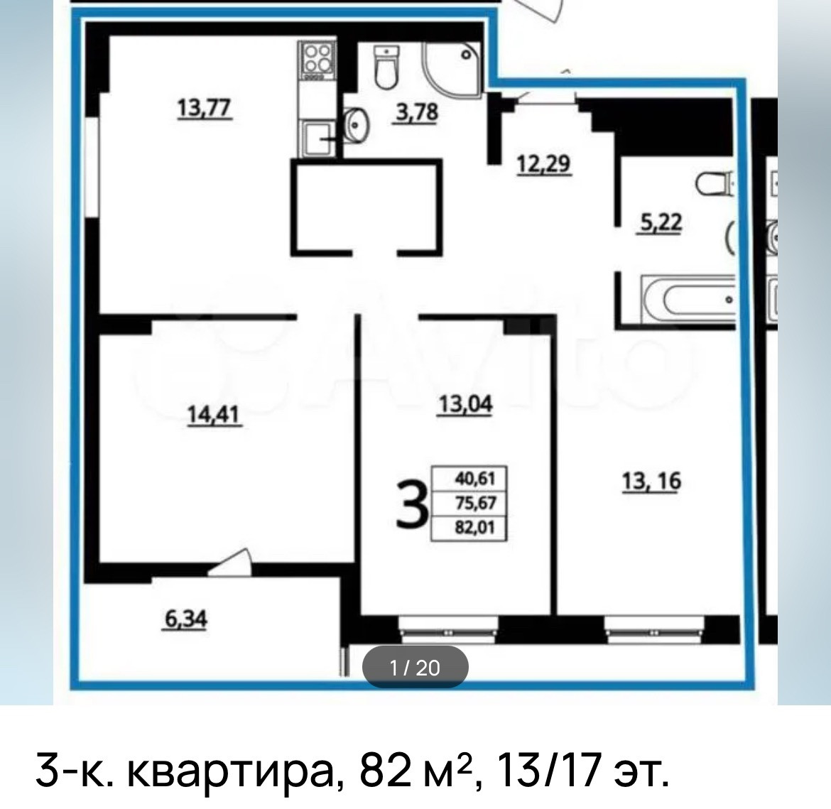3-комнатная квартира, 82.3 м2, этаж 13 / 16, на продажу в Волгограде, Ополченская улица, 27Б