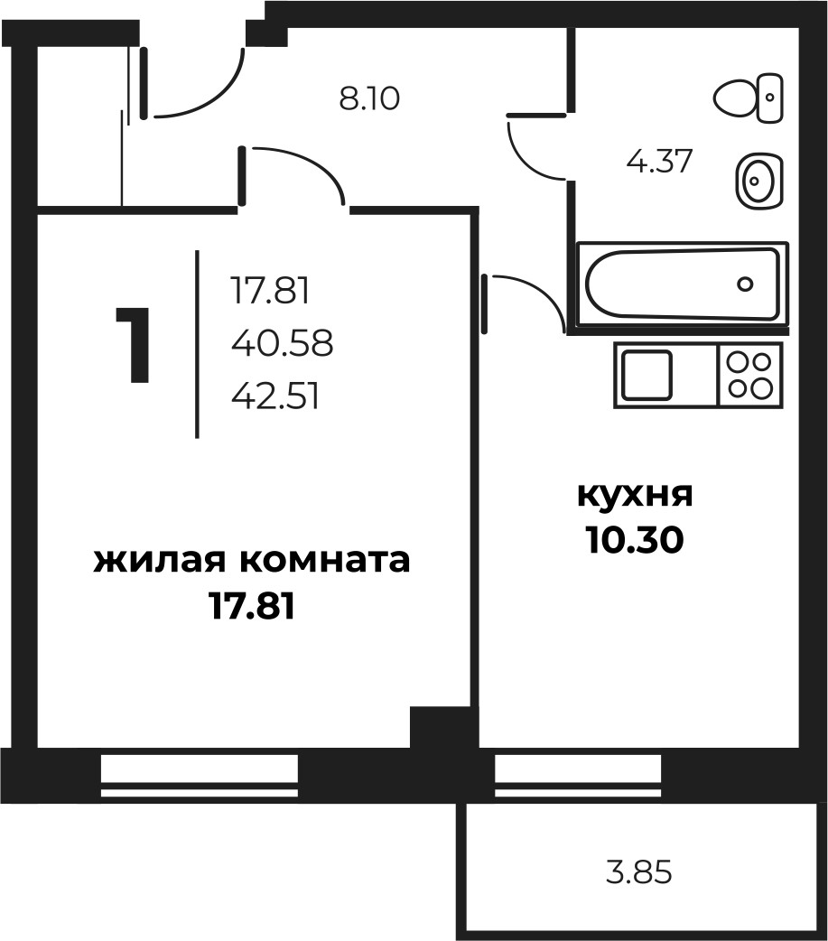 Общая площадь 42.79 м2