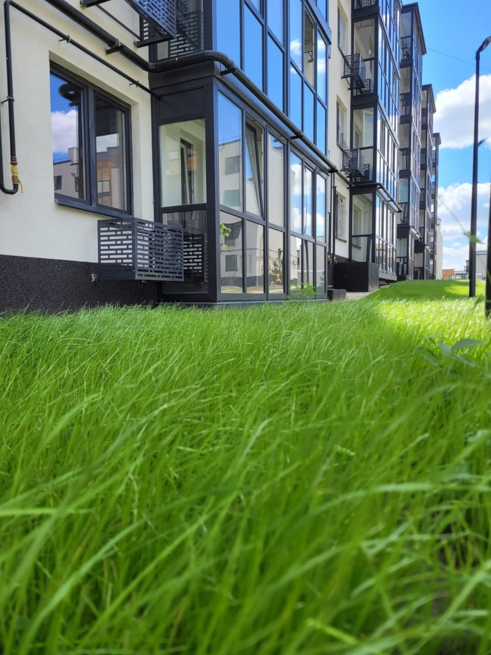 Большой благоустроенный двор, изолированный от автотранспорта со спортивной и детской площадкой, зелеными газонами и зонами отдыха.Сетевые магазины,новый детский сад,школа, запланировано строительство поликлиники и торгового центра. В шаговой доступности открывается отдельностоящий супермаркет. Парк отдыха в пешей доступности. Остановка общественного транспорта у дома.