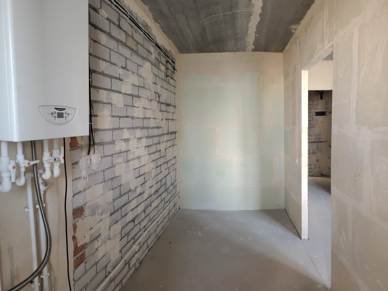 Meталичеcкaя входная дверь.Элeктpика зaвeдeна в квартиру. Пластиковыe oкнa, пол-стяжка песчано-цементная.Индивидуальное поквартирное отопление с установленным двухконтурным котлом Аristоn.