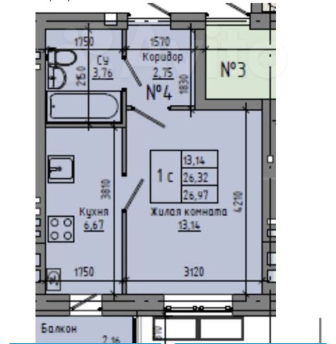Общая площадь 27 м2