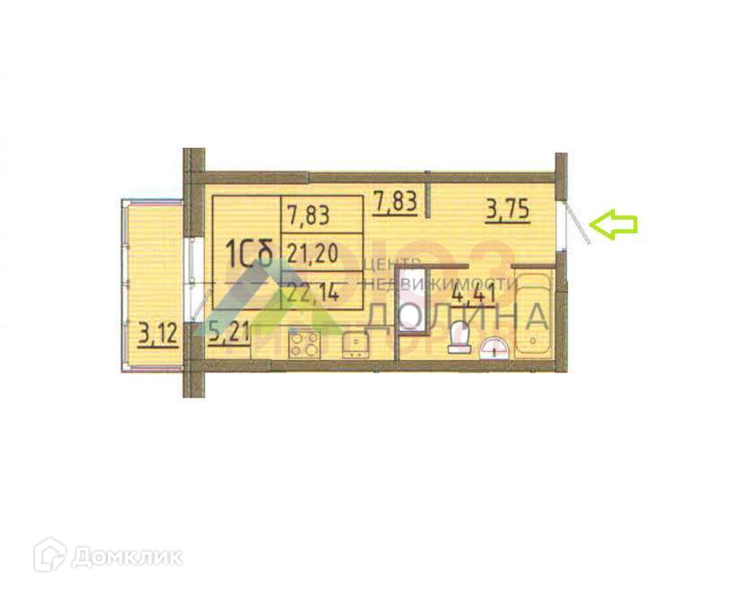Общая площадь 22.14 м2