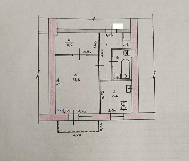 Площадь кухни 5.6 м2