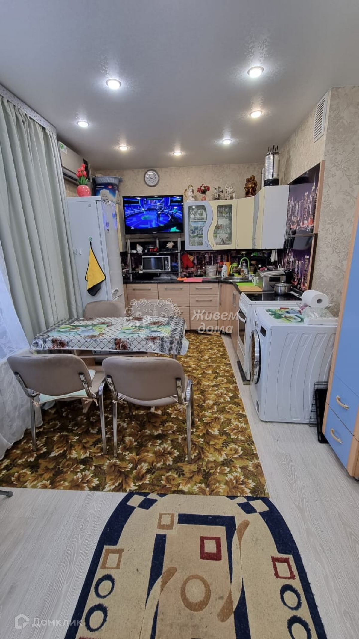 Квартира в хорошем состоянии. Кухня совмещена с гостиной. Натяжные потолки. Пластиковые окна. Раздельный санузел. Стоят счетчики на воду. Горизонтальная разводка системы отопления. Есть застекленная пластиком лоджия