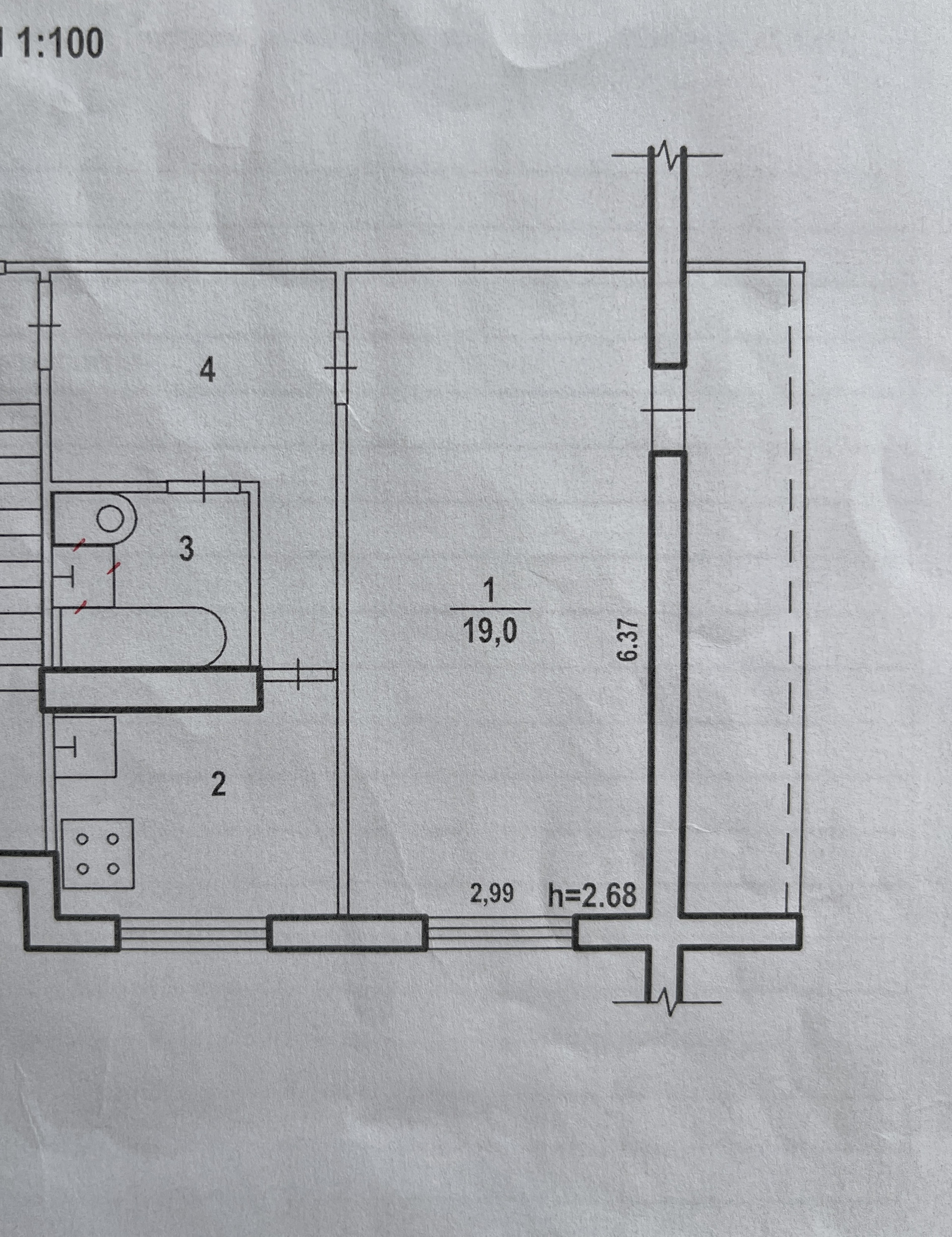 Жилая площадь 19 м2