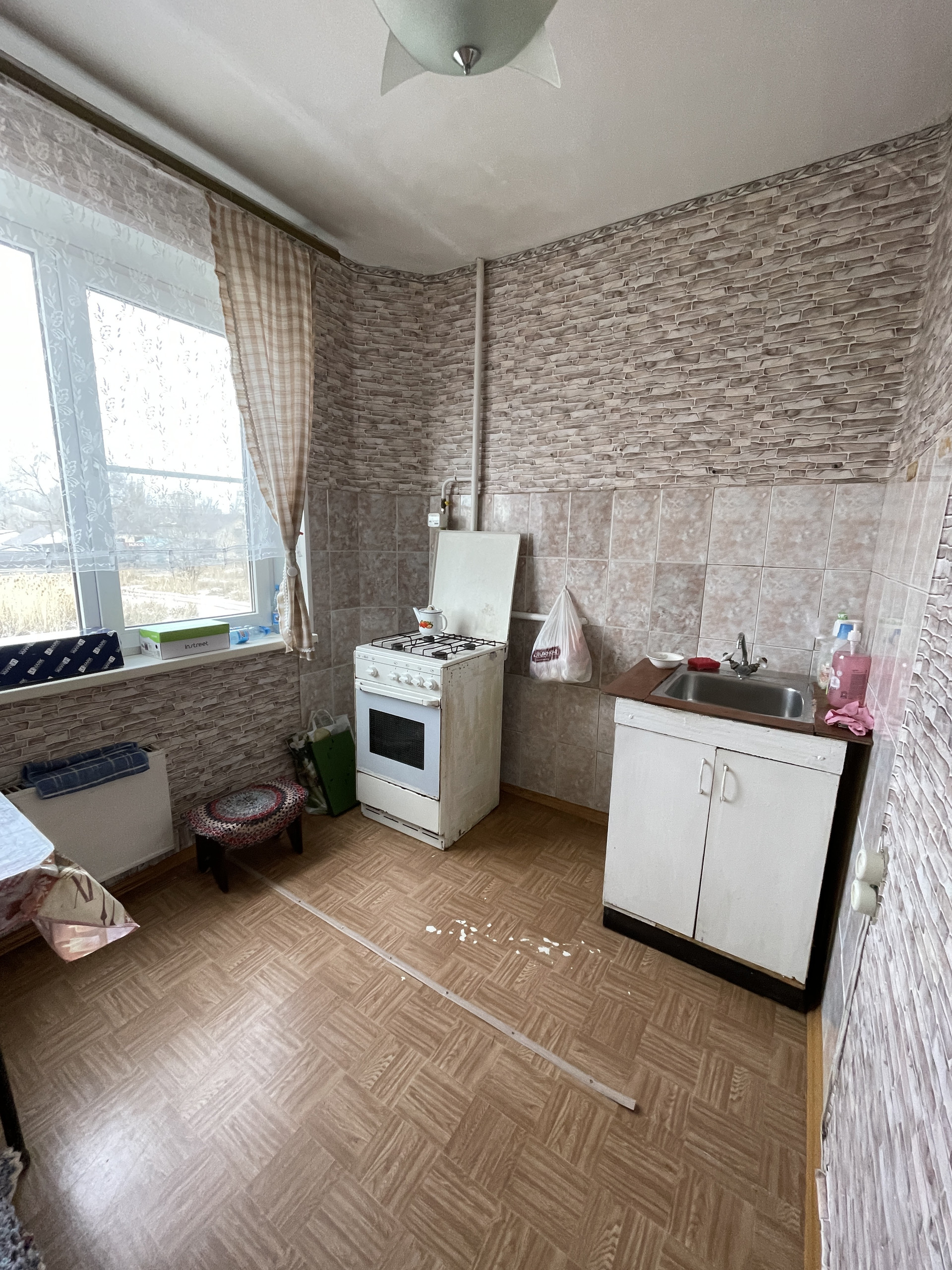 Квартира в обычном жилом состоянии, освобождена, установлены пластиковые окна (в комнате и на кухне), на полу ленолиум, в ванной плитка, приборы учета на газ, воду и свет.
