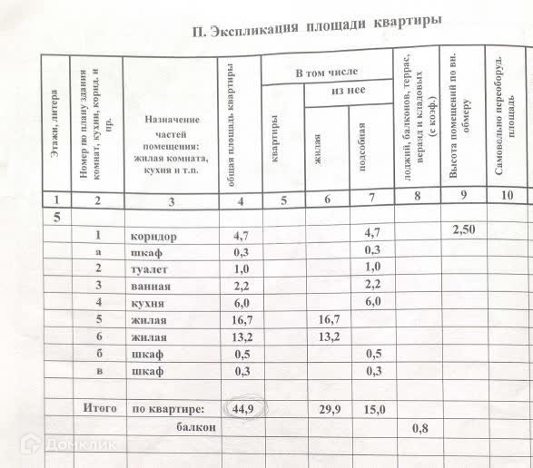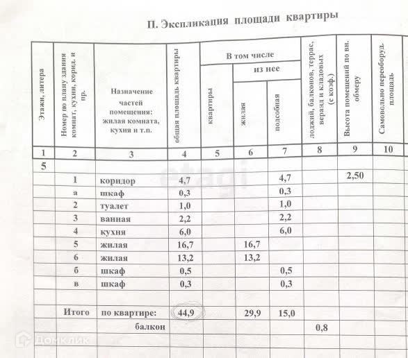 Общая площадь 44.9 м2