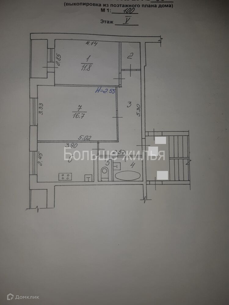 Общая площадь 51.5 м2