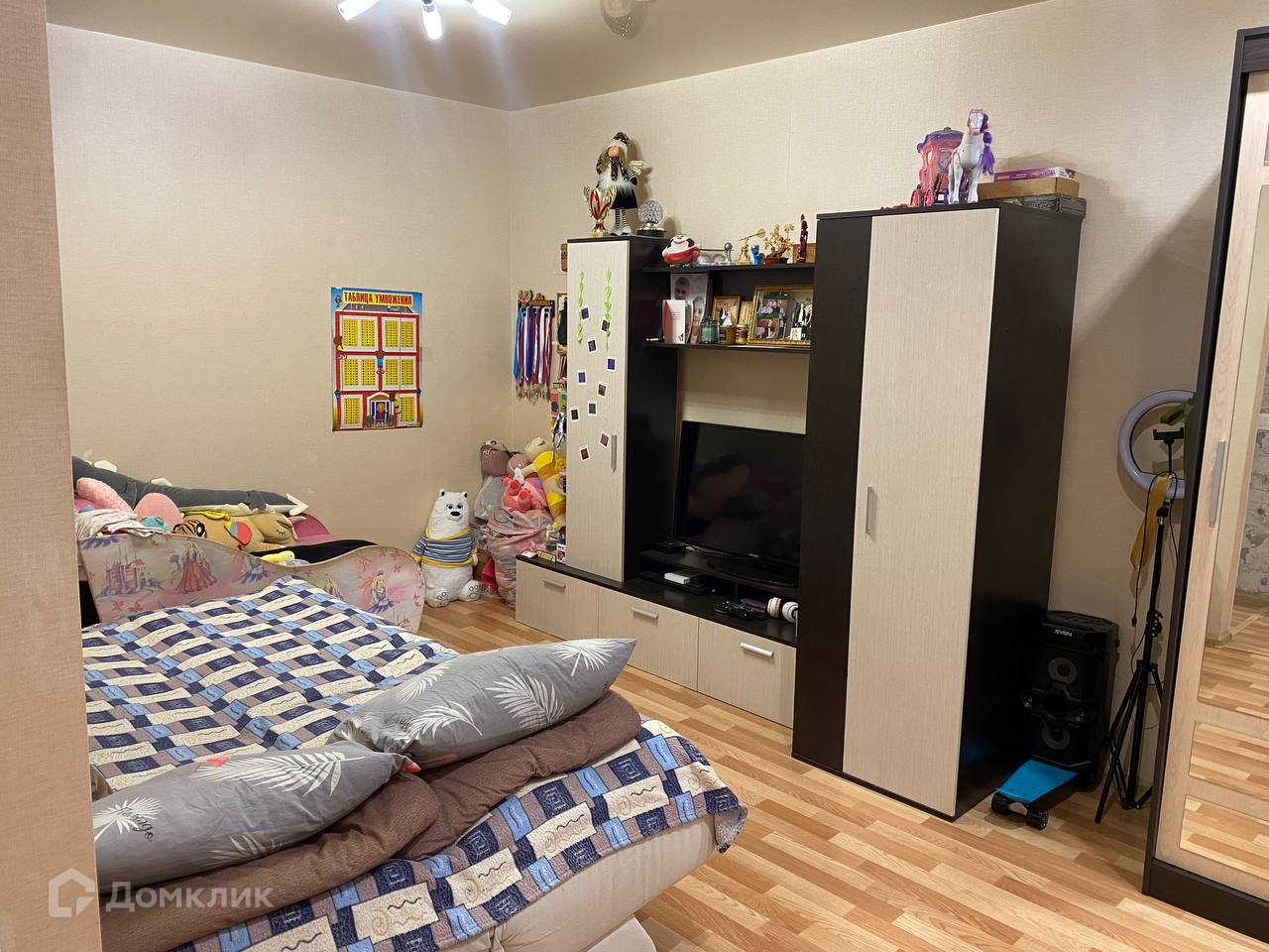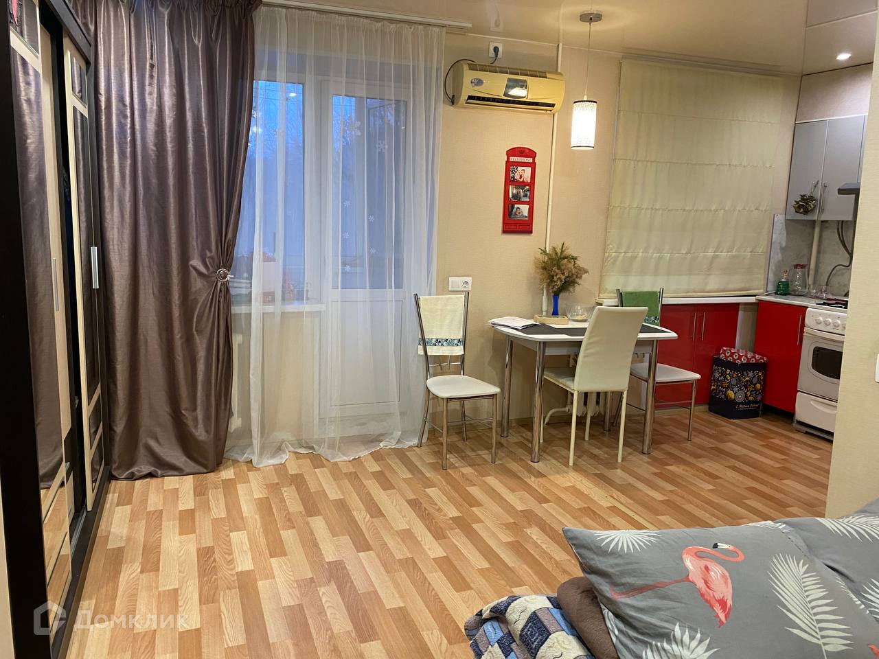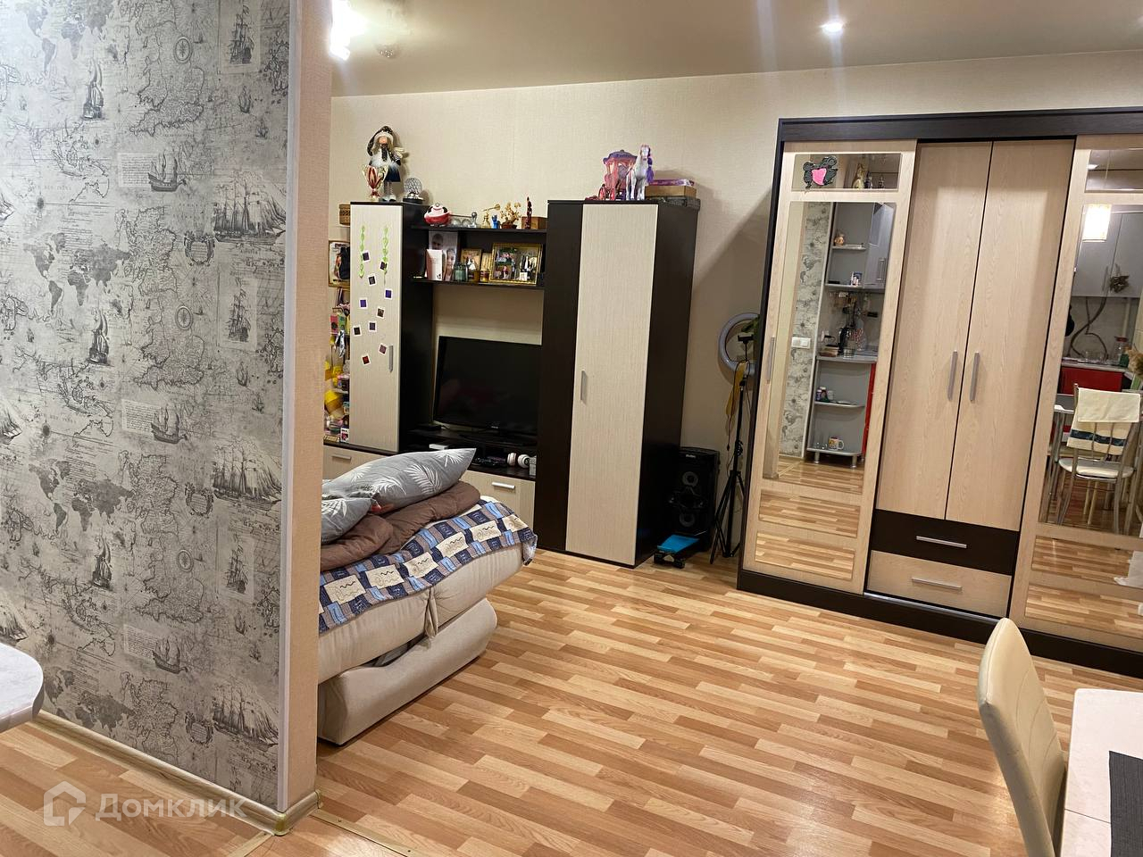 При продаже остается: кухонный гарнитур, спальное место, шкаф, стенка, обеденная группа