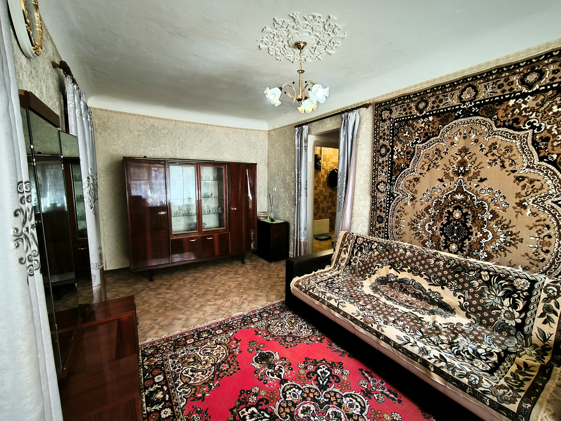 Состояние жилое. Поменяны радиаторы отопления,  окна деревянные, на полу линолеум. Установлены счетчики на воду и на газ.