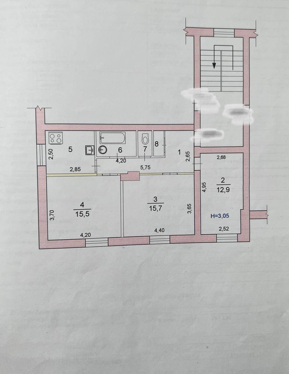 Площадь комнaт: 15,7 м2, 15,5 м2, 12,9 м2.