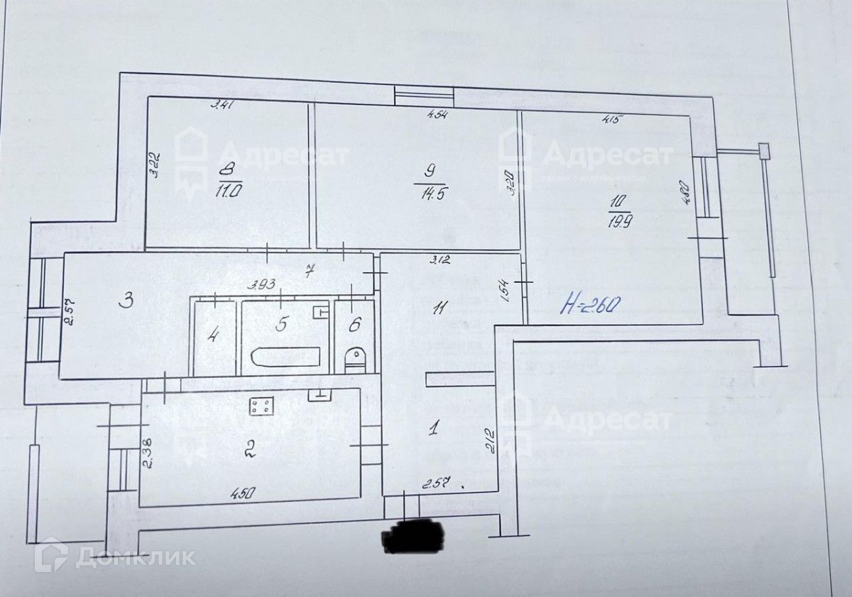 Высота потолков 2.6 м