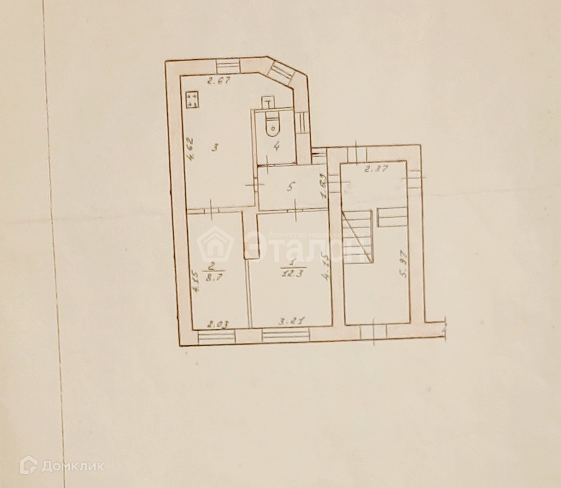 2-комнатная квартира, 40.1 м2, этаж 1 / 3, на продажу в Волгограде, Клинская улица, 32