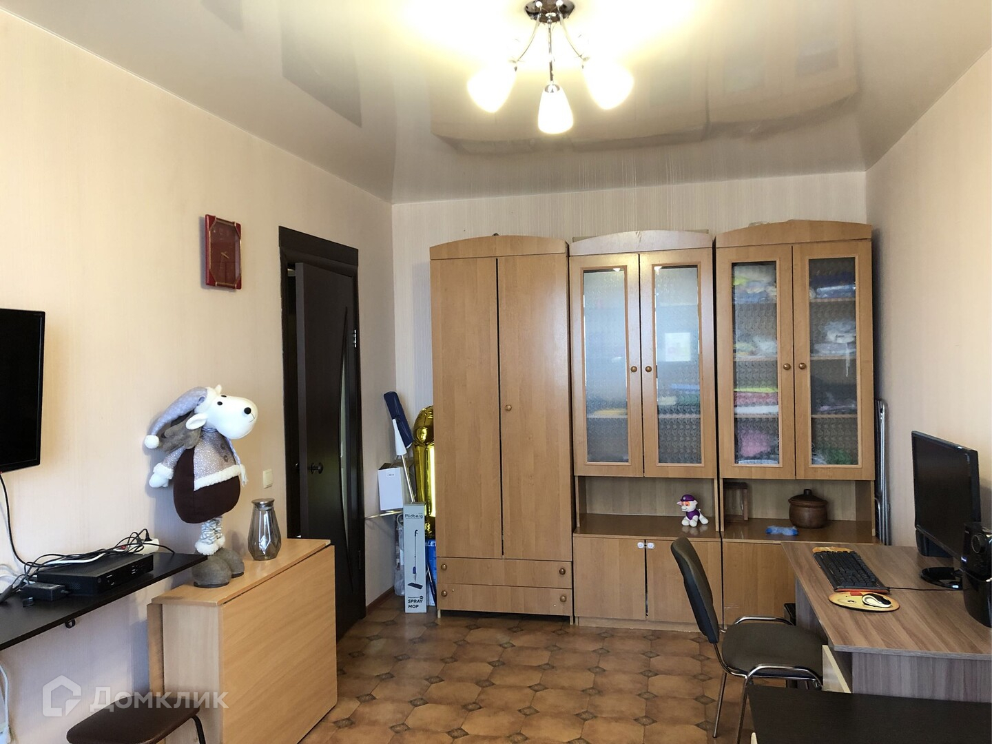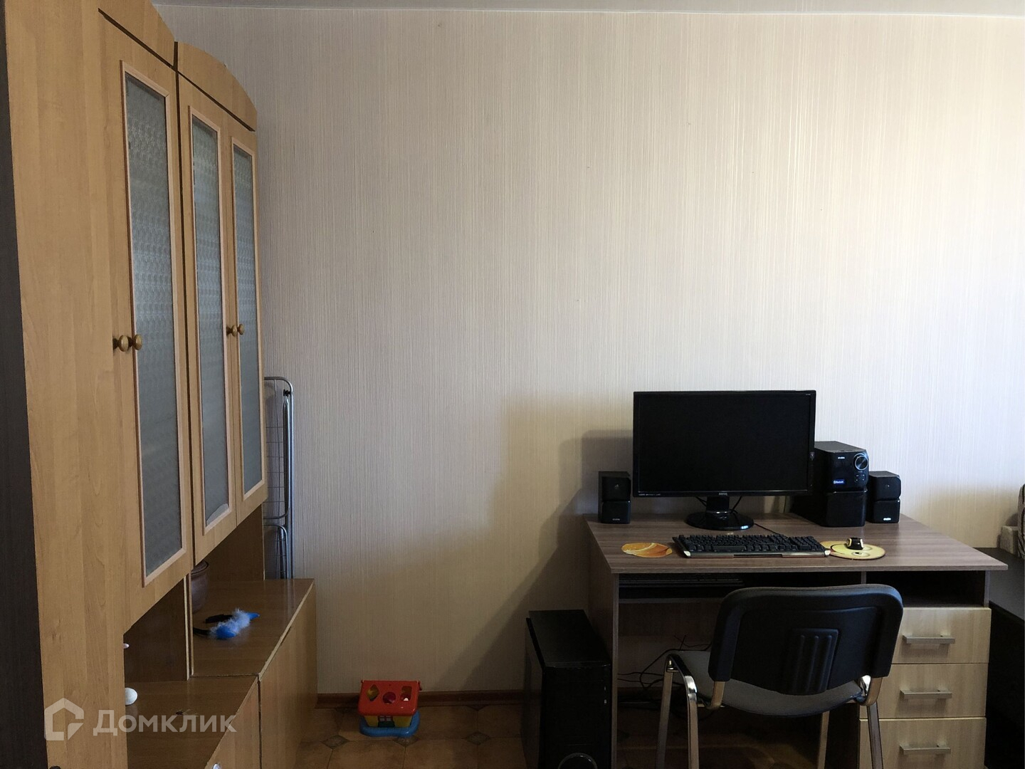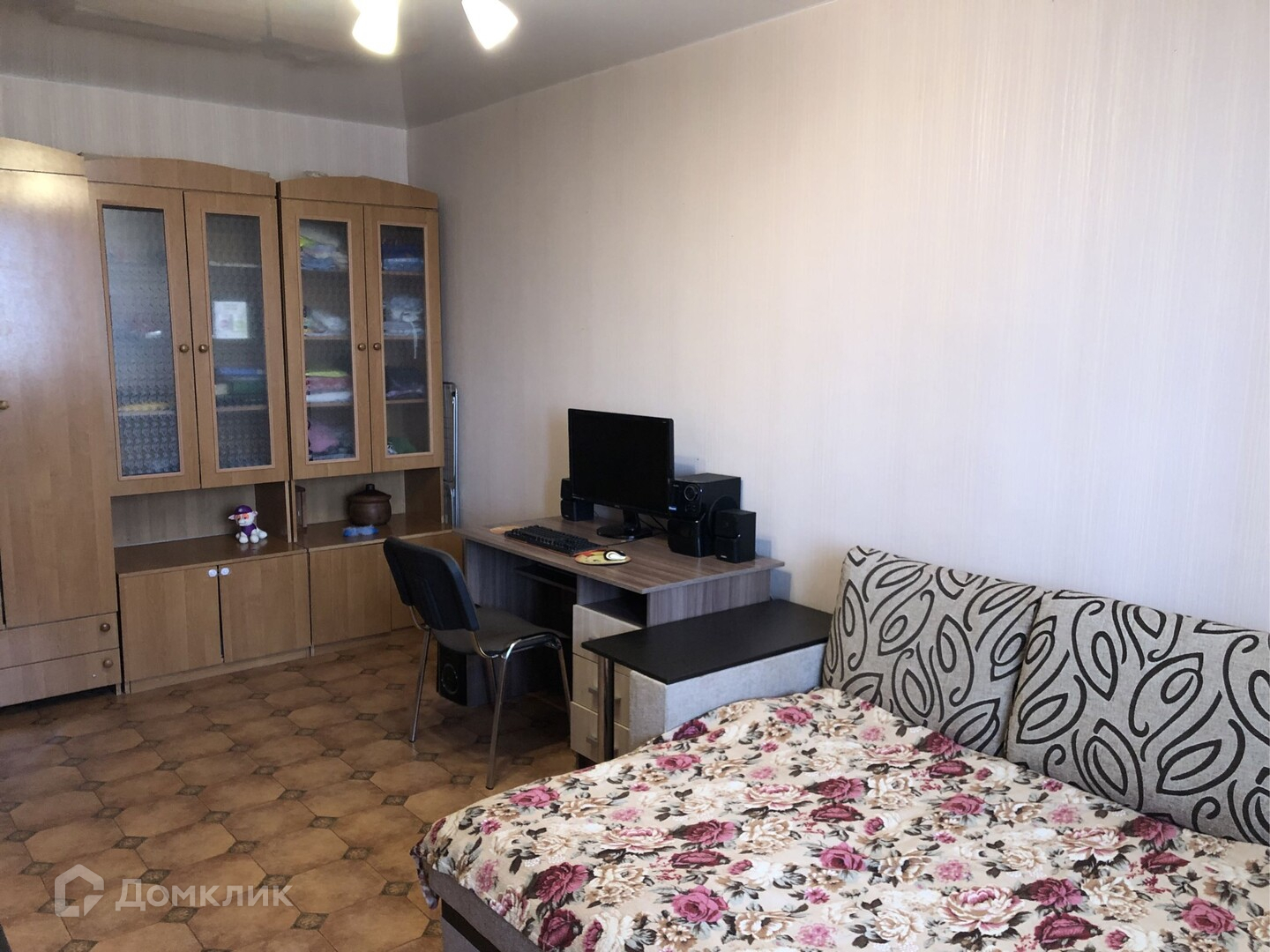 В квартире остаются кухонный гарнитур, шкафы для хранения вещей, диван.
