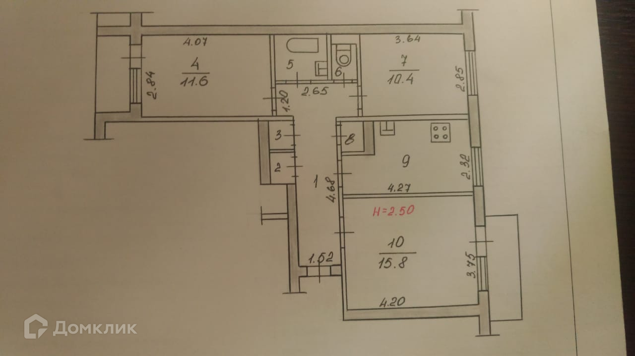 Комнаты: 15.8 + 10.4 + 11.6 метров