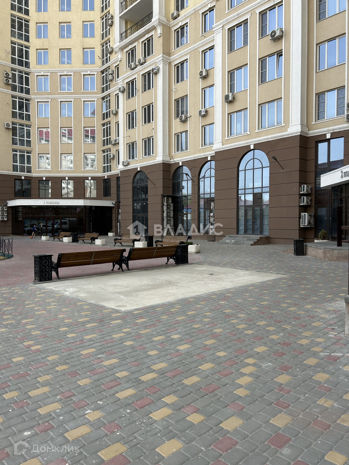 -закрытый двор, въезд через шлагбаум