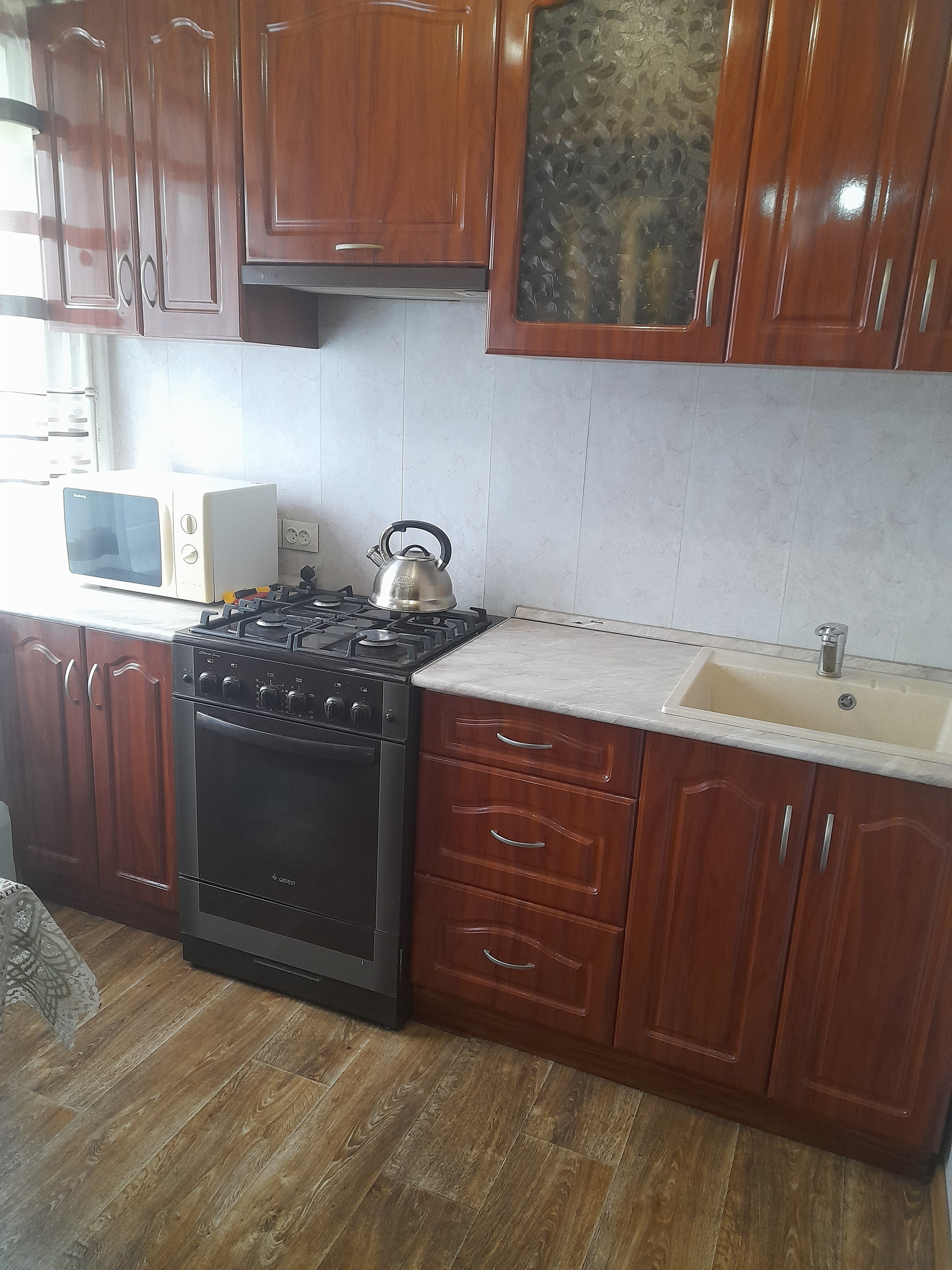 Двухкомнатная квартира, в хорошем состоянии, перепланировка- соеденина комната с кухней( большая гостинная), поменены электрика, трубы, отопление, счётчики, торг.