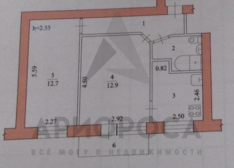 Высота потолков 2.5 м