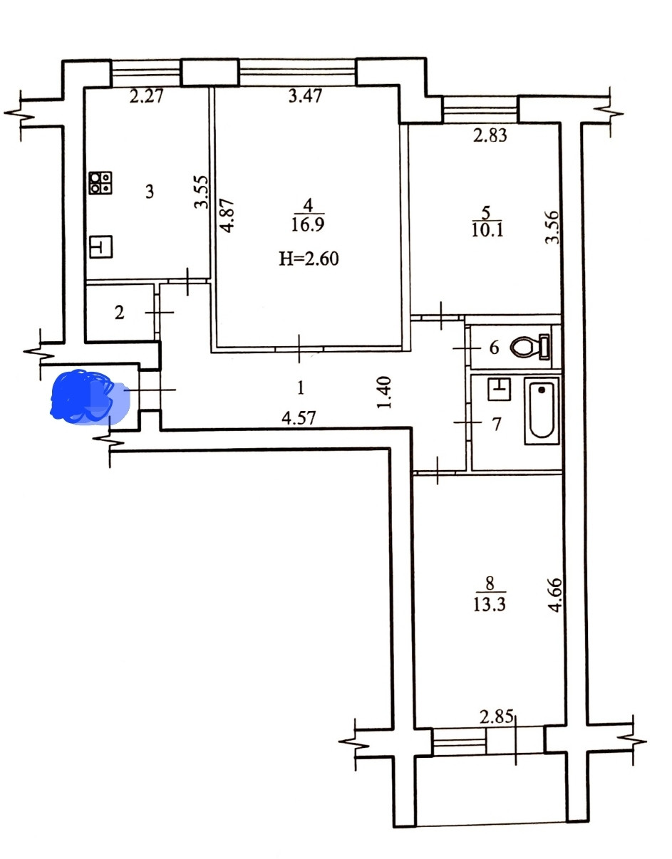 Высота потолков 2.6 м