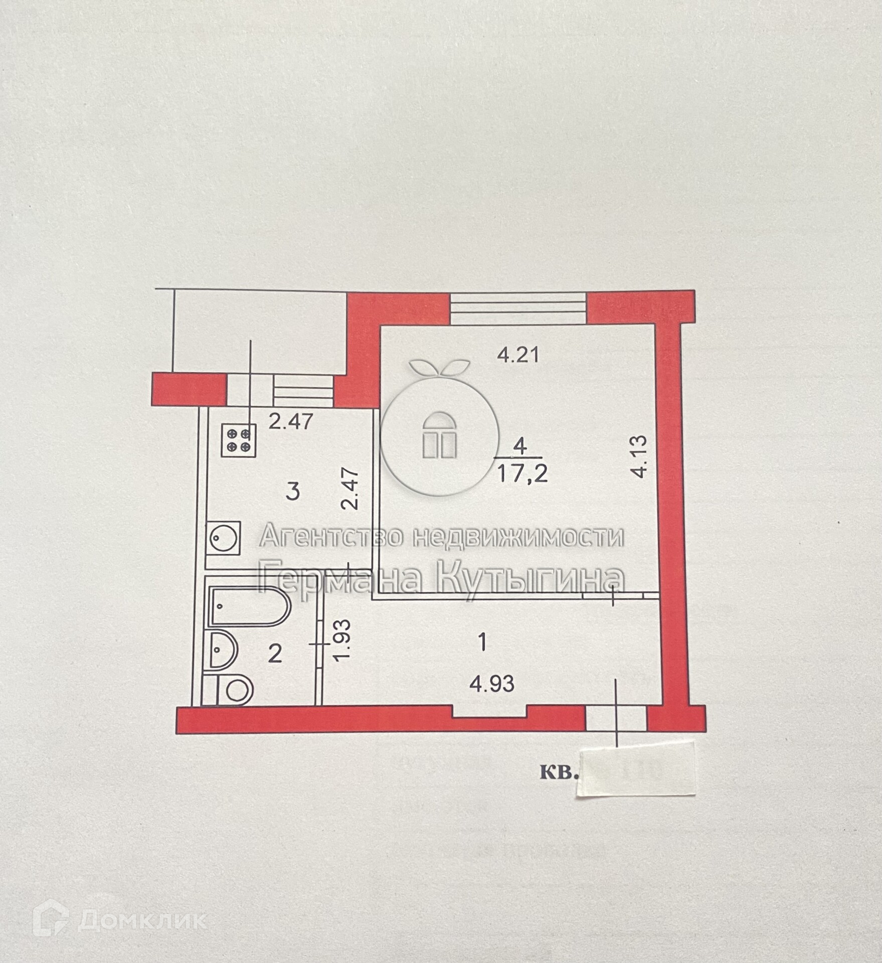 Жилая площадь 17.2 м2