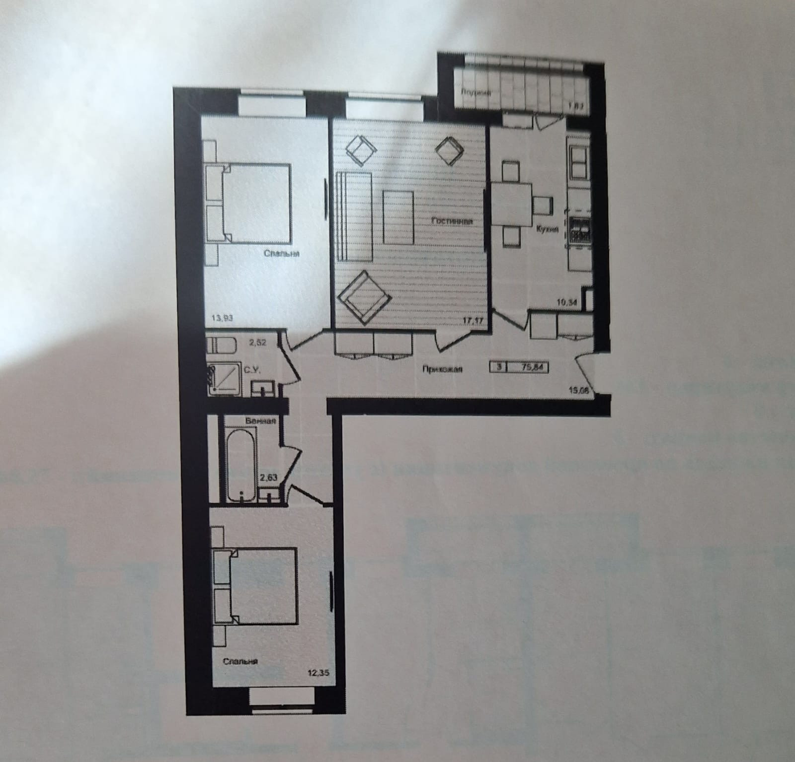 Общая площадь 75.84 м2