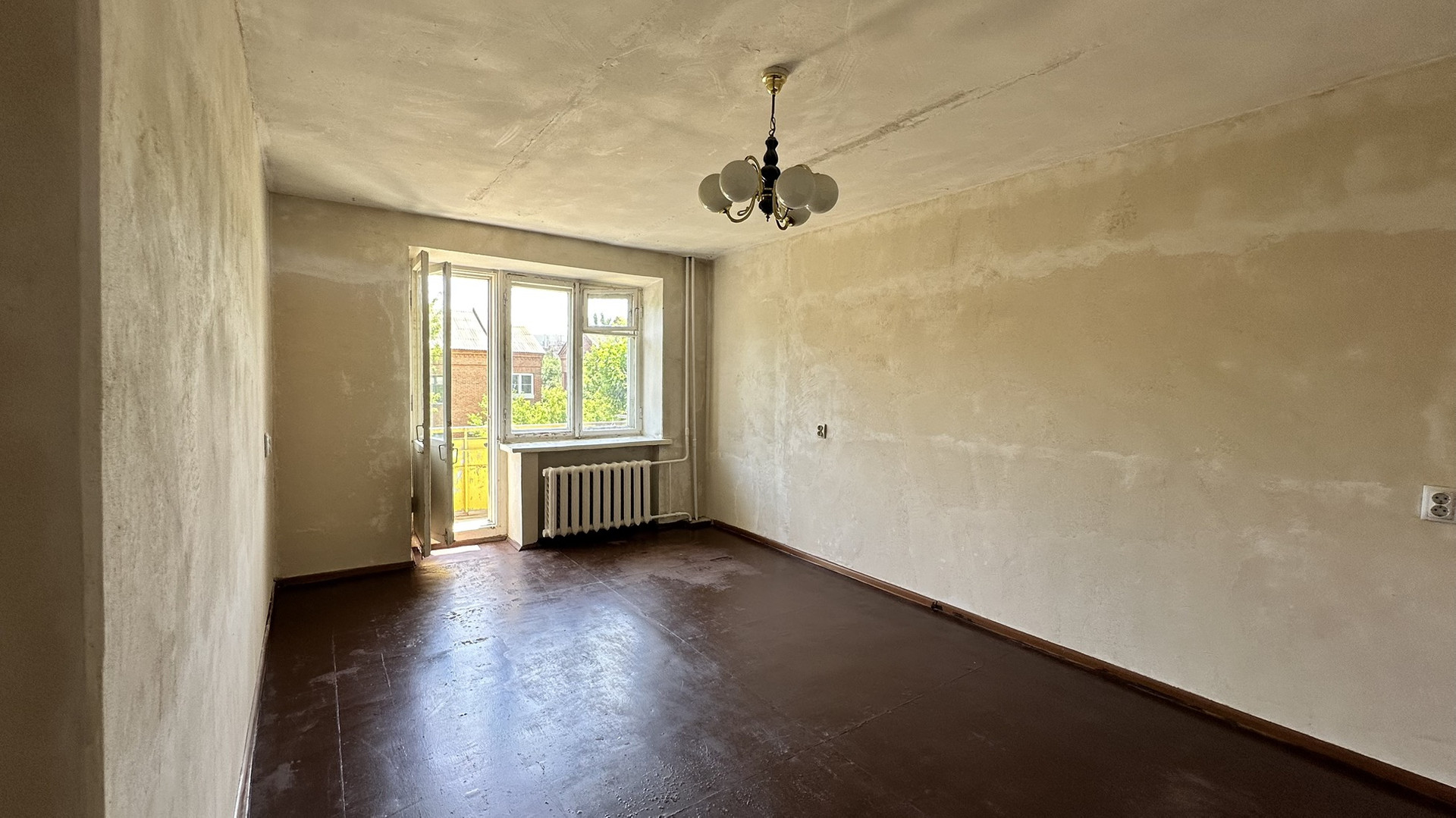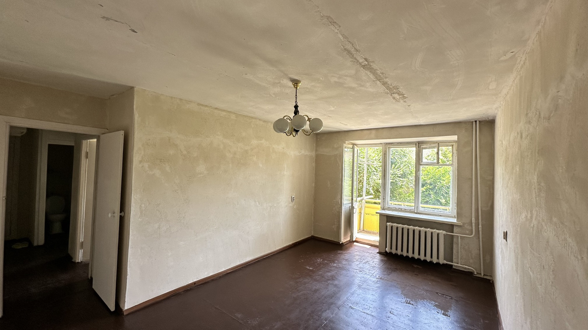 Продается двухкомнатная квартира, требующая ремонта. Стены выровнены.
