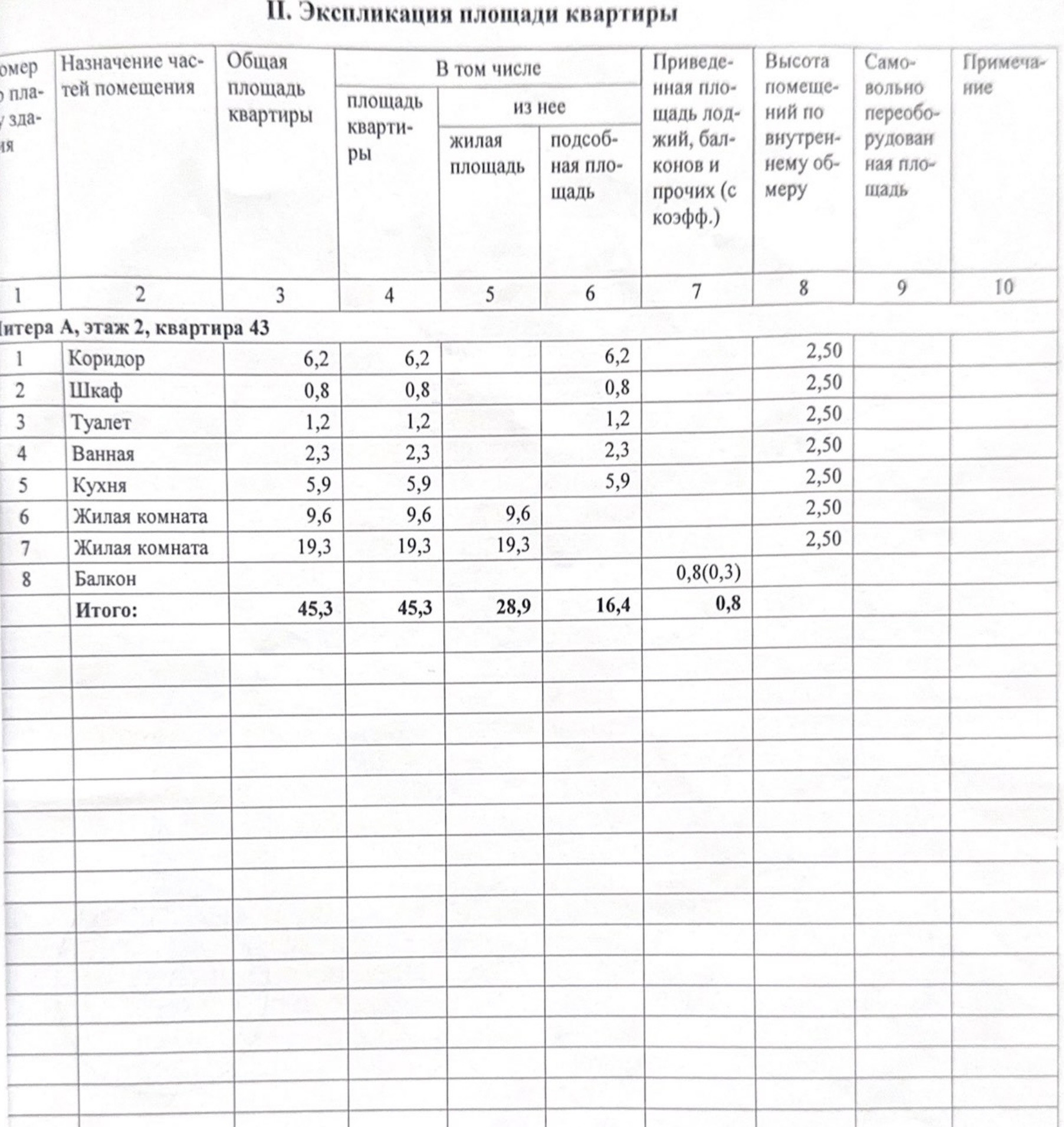 Общая площадь 45.3 м2