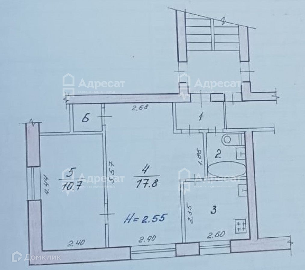 2-комнатная квартира, 41.1 м2, этаж 3 / 5, на продажу в Волгограде, Даугавская улица, 4