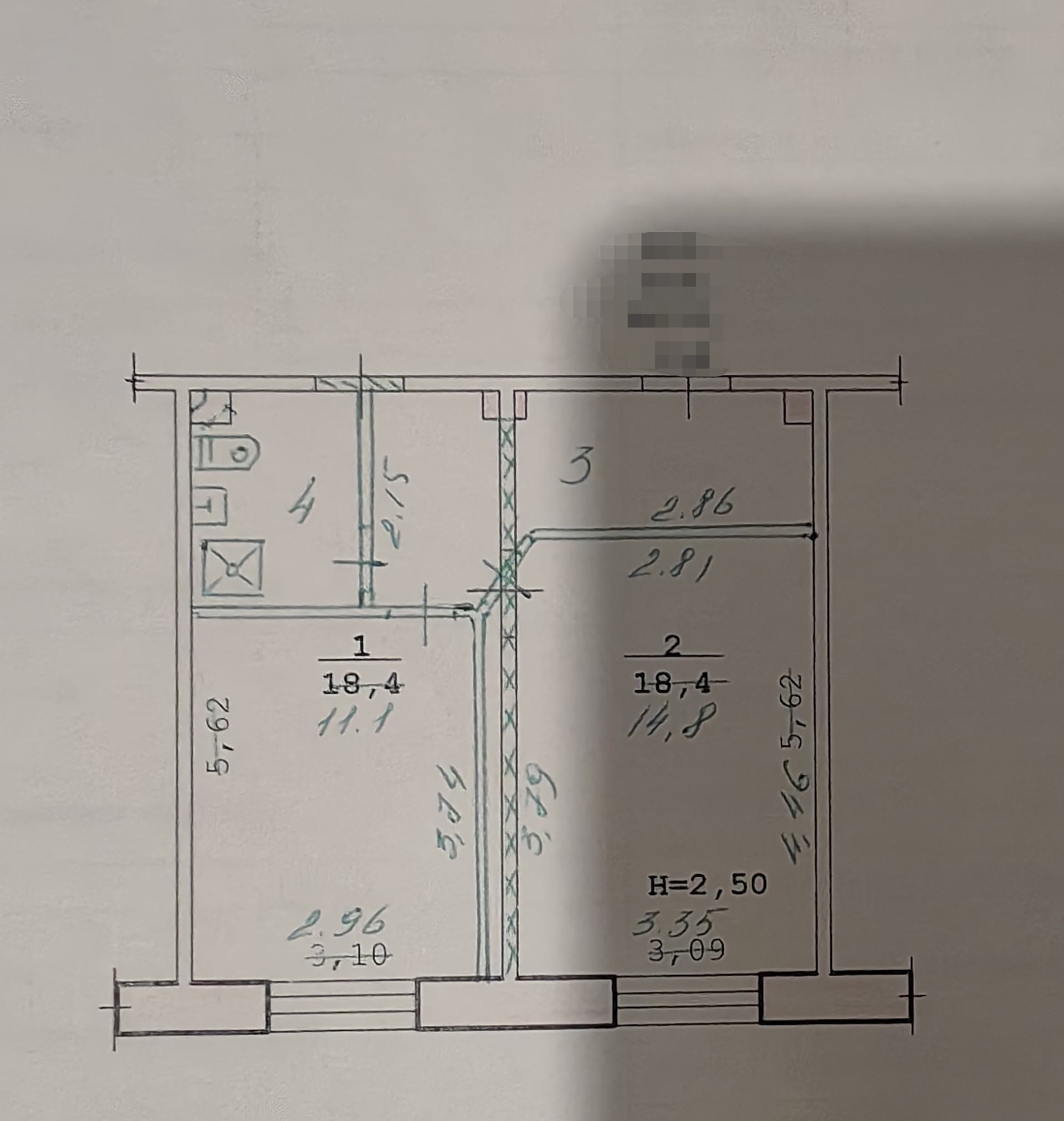 Общая площадь 36.8 м2